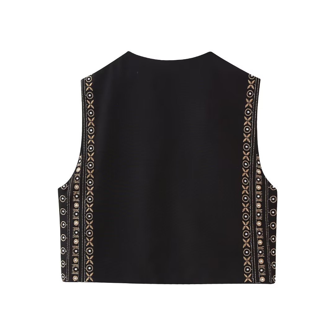 Autumn New Classic Style Beaded Embroidery Short Cotton-padded Jacket Vest