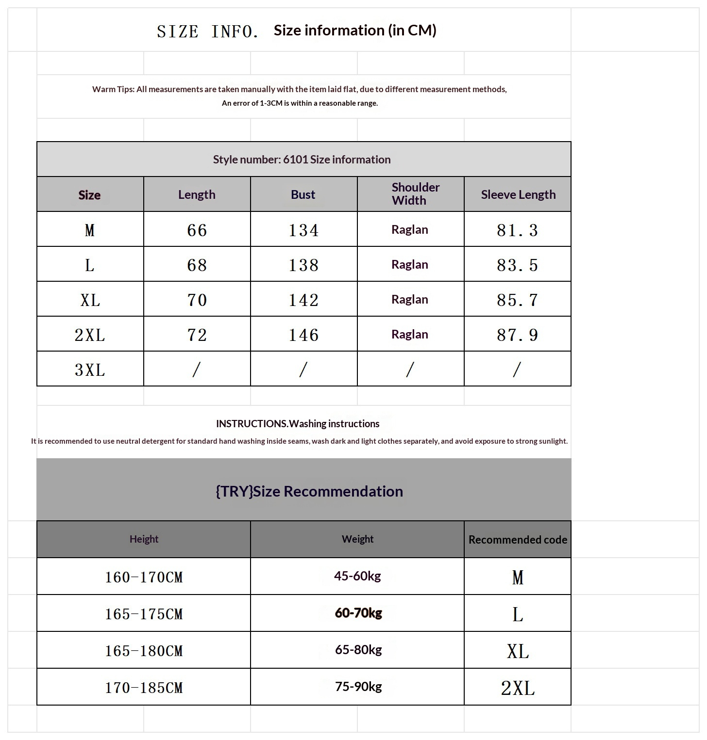 1. Asian sizes are 1 to 2 sizes smaller than European and American people. Choose the larger size if your size between two sizes. Please allow 2-3cm differences due to manual measurement. 2. Please check the size chart carefully before you buy the item, if you don't know how to choose size, please contact our customer service. 3.As you know, the different computers display colors differently, the color of the actual item may vary slightly from the following images.