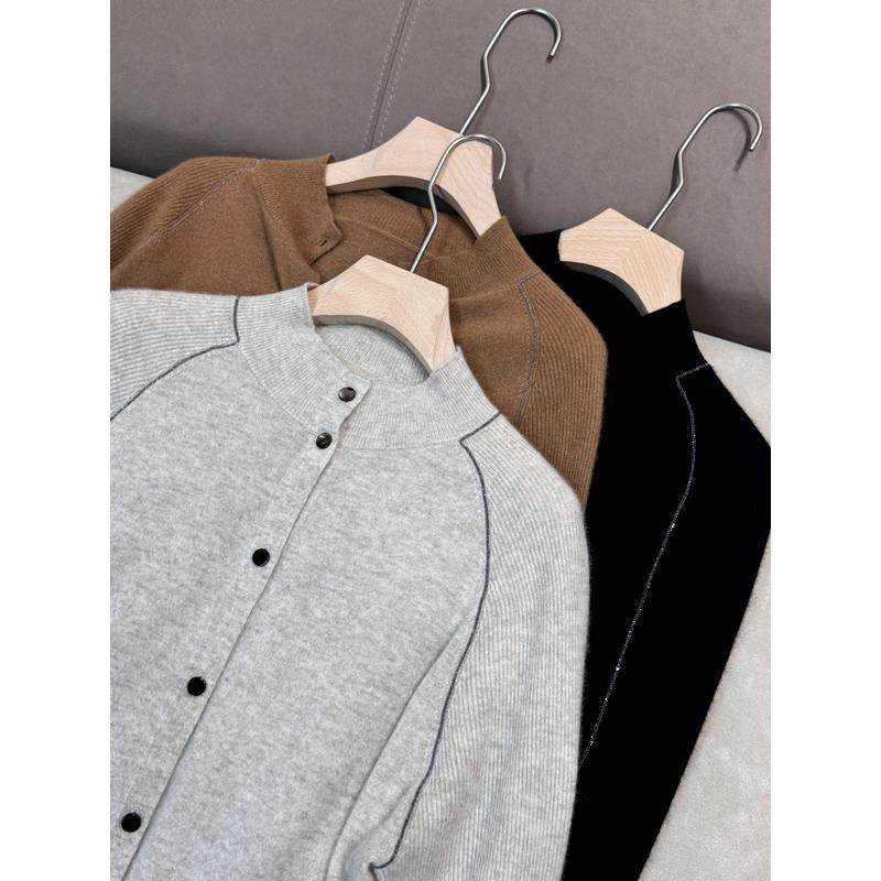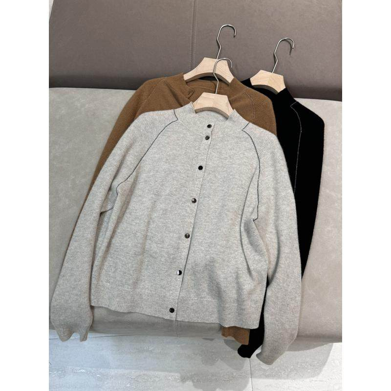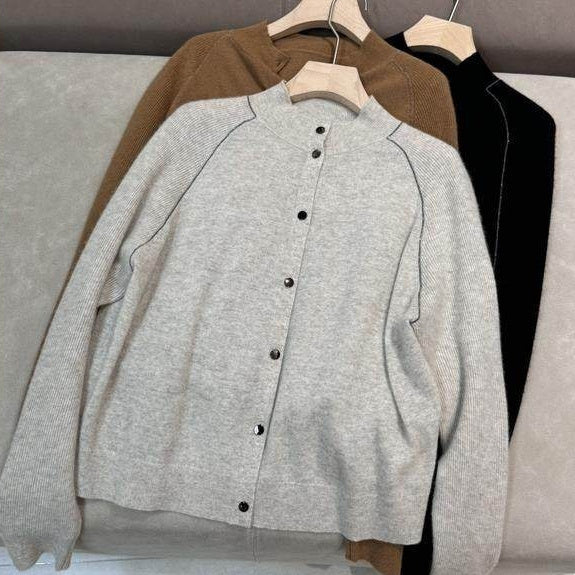 Womens AutumnWinter Crew-Neck Long-Sleeve Wool Knit Cardigan With A Relaxed Slimming Design