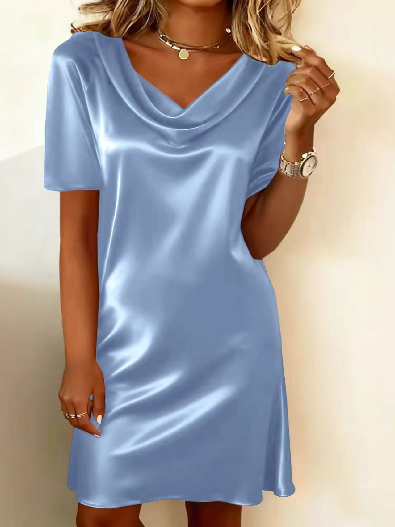 Womens Mid-length Shift Dress With A Boat Neck And Short Sleeves
