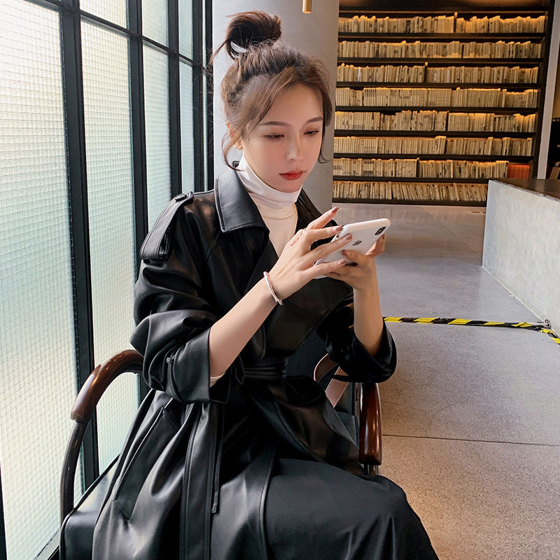 Autumn New Leather Trench Slim-fit Leather Coat