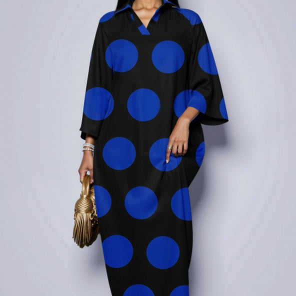 Casual, Chic Polka-dot Print Loose-fitting Dress With Batwing Sleeves For Women