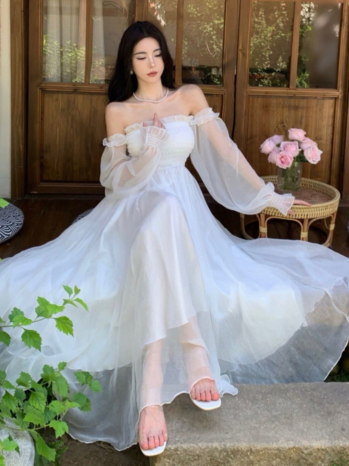 Elegant White Chiffon Beach Dress For Women
