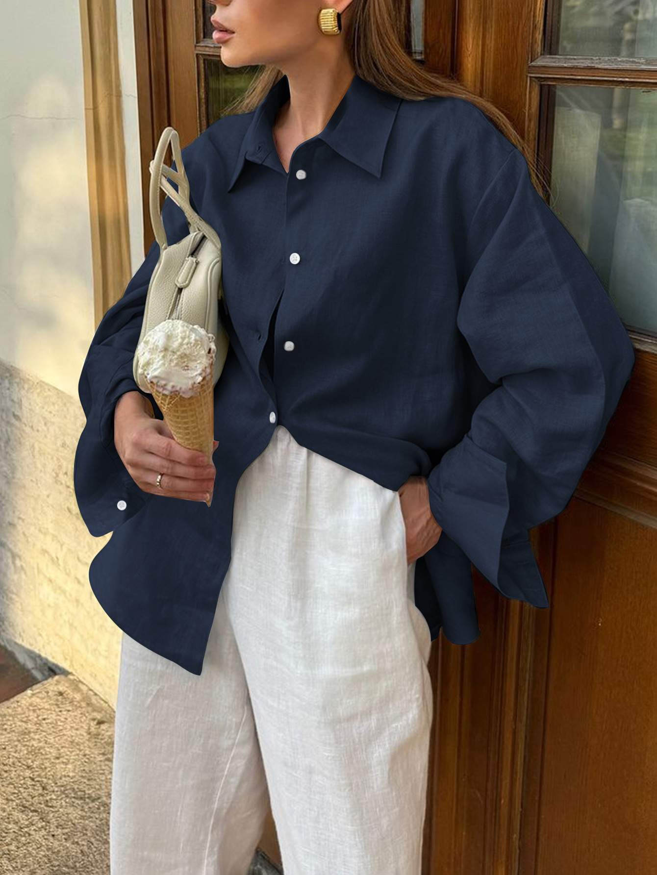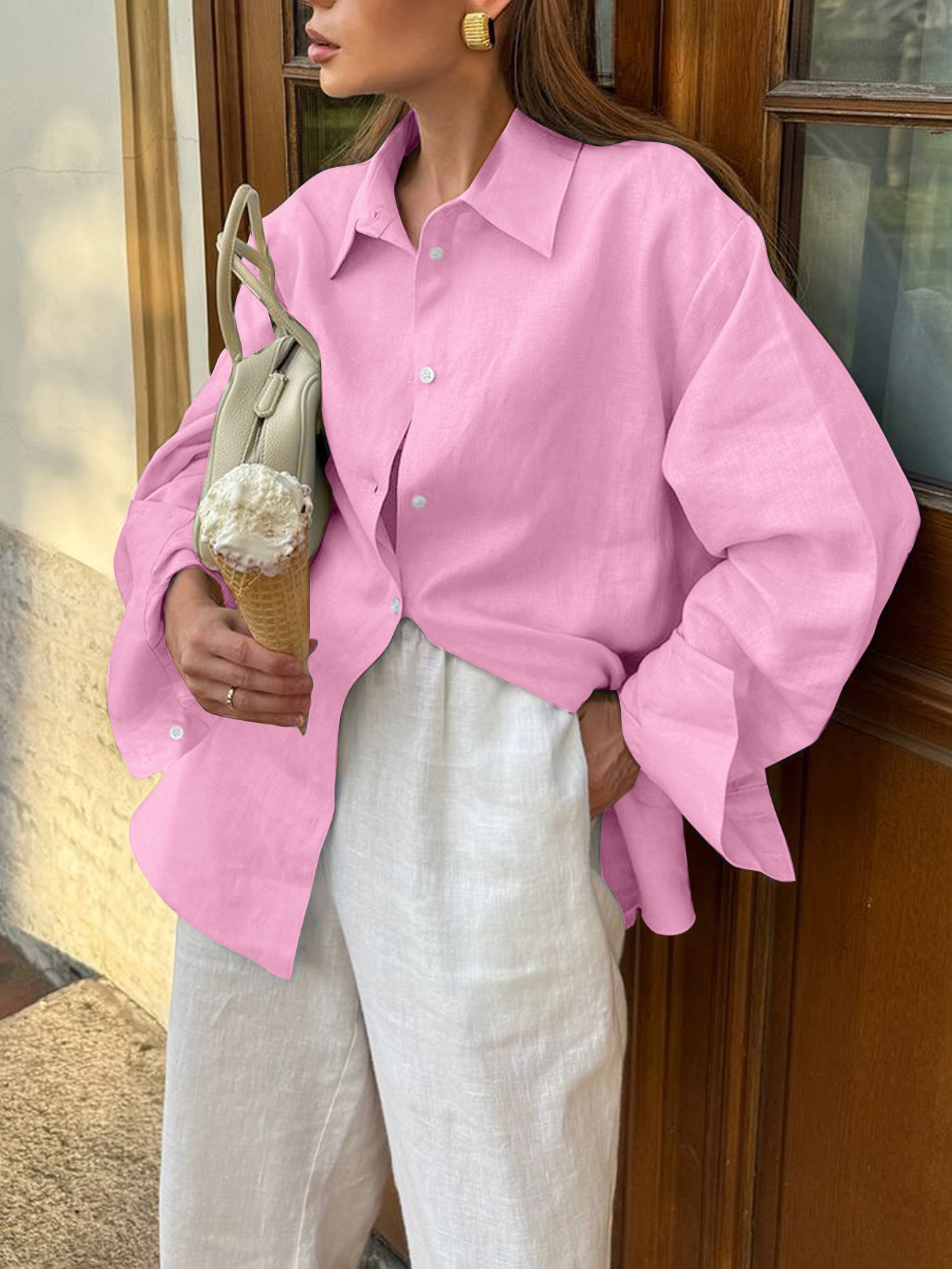 European And American Leisure Vacation Solid Color Long Sleeve Women