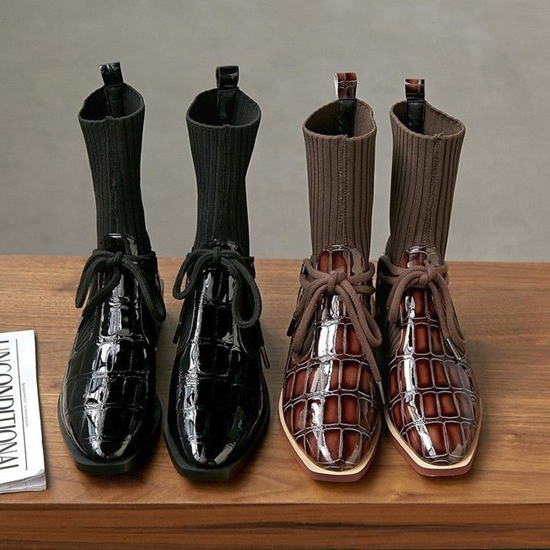 Japanese Retro Patent Leather Short Boots