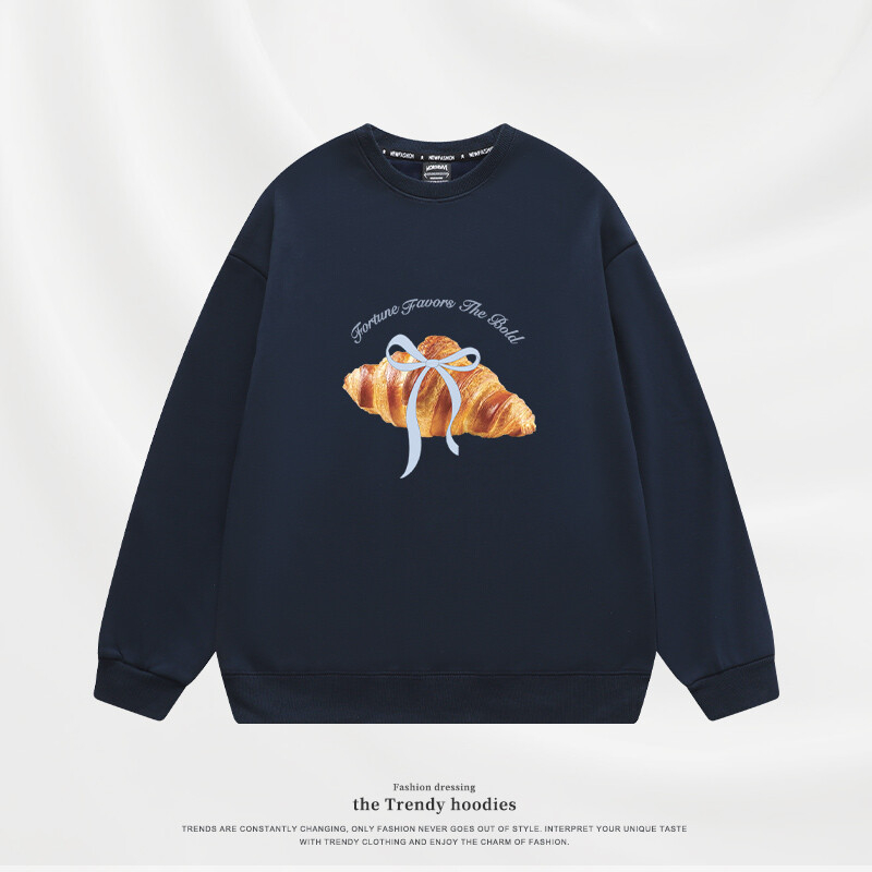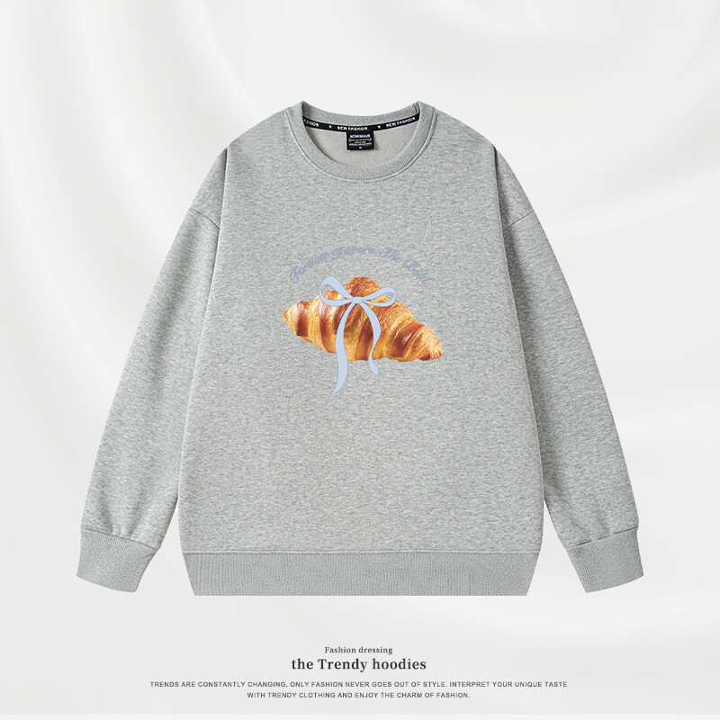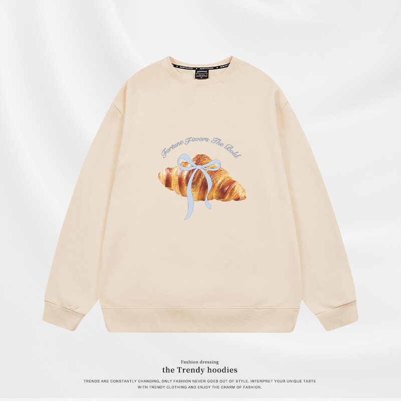 Korean-style Loose Croissant-horn Crew-neck Womens Hoodie