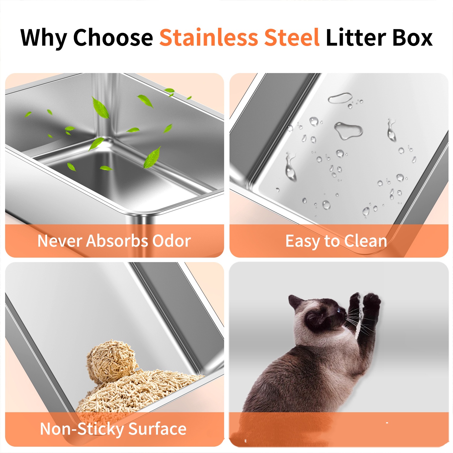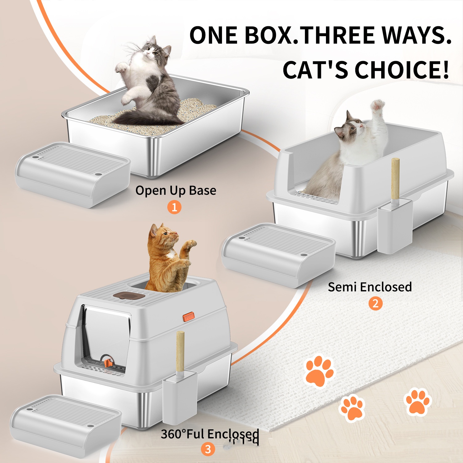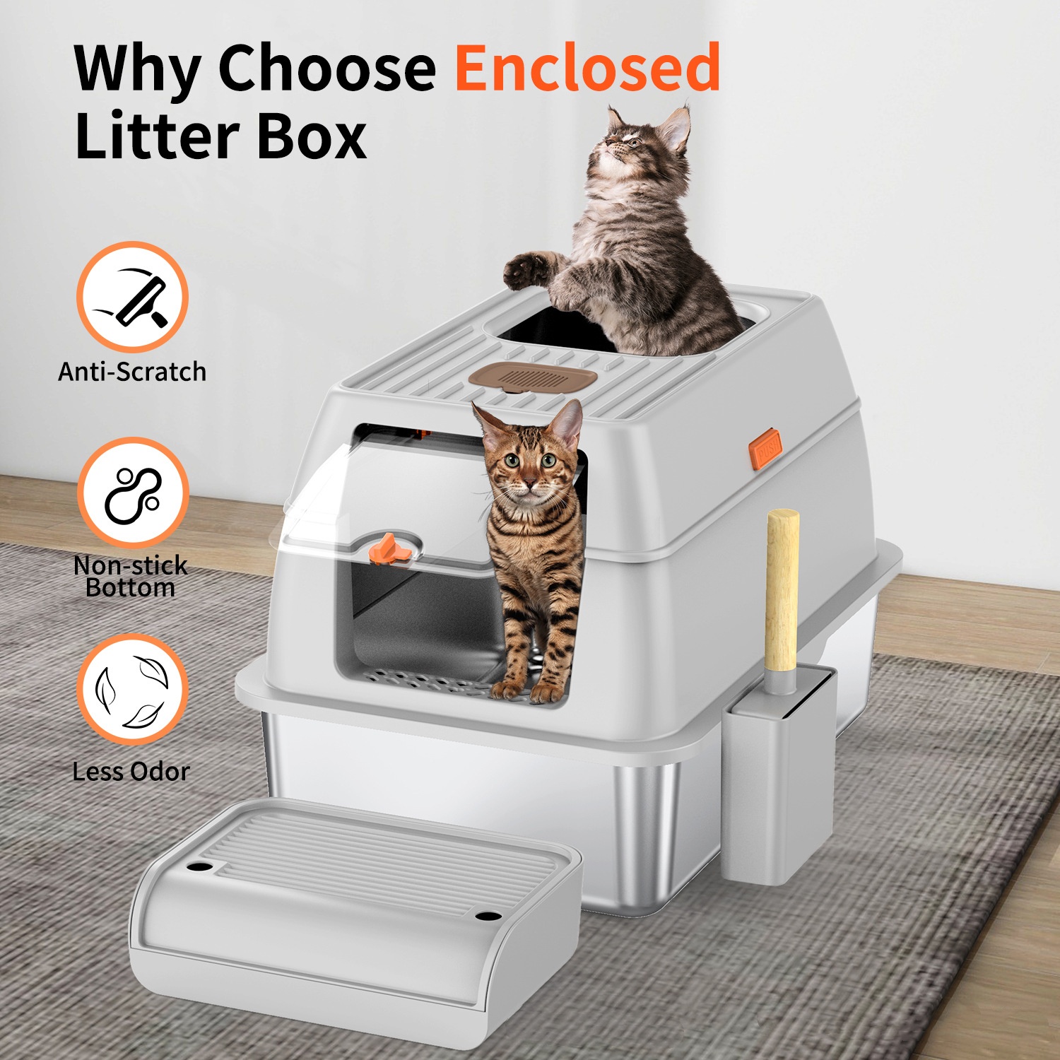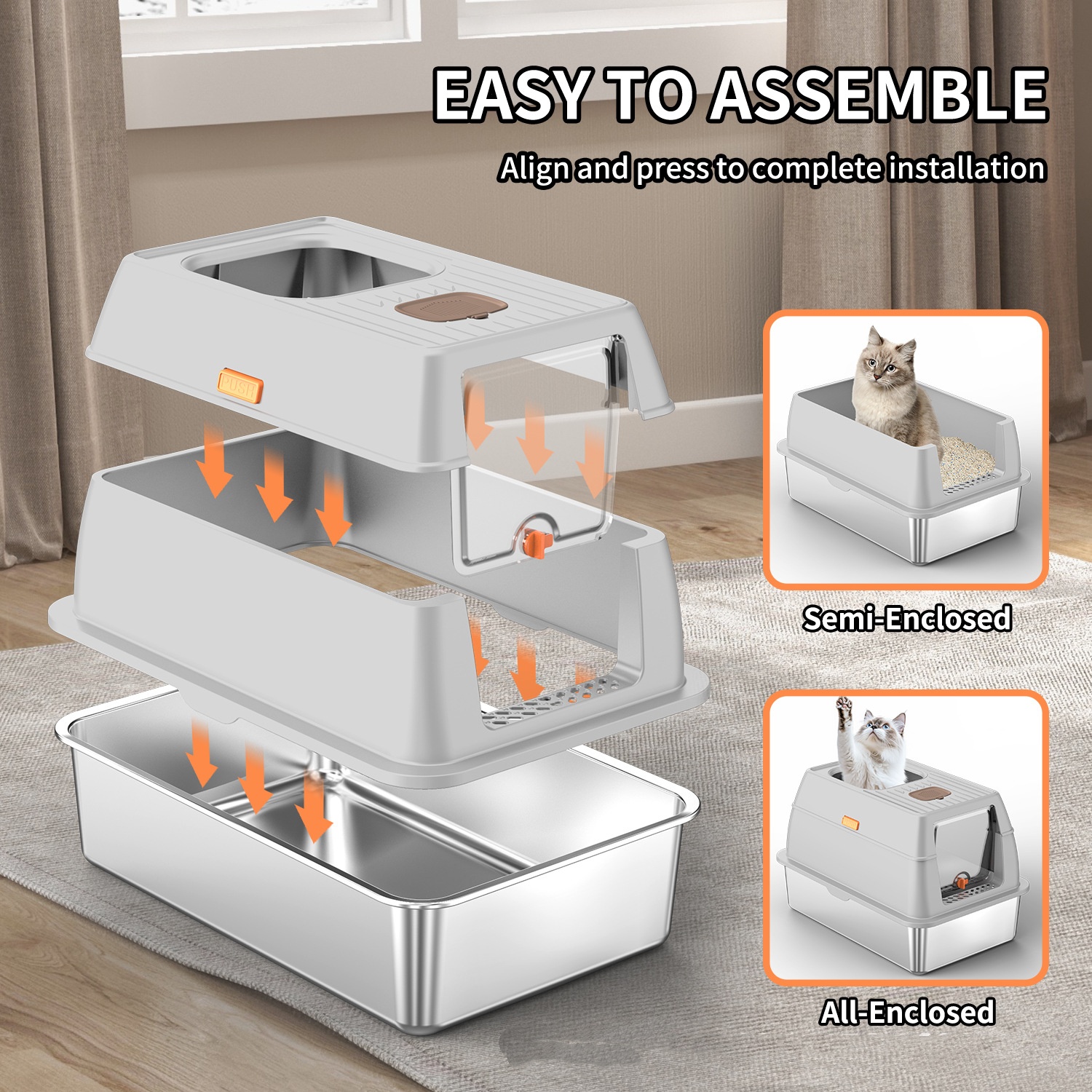 Large Anti-odor Fully Enclosed Stainless Steel Litter Box