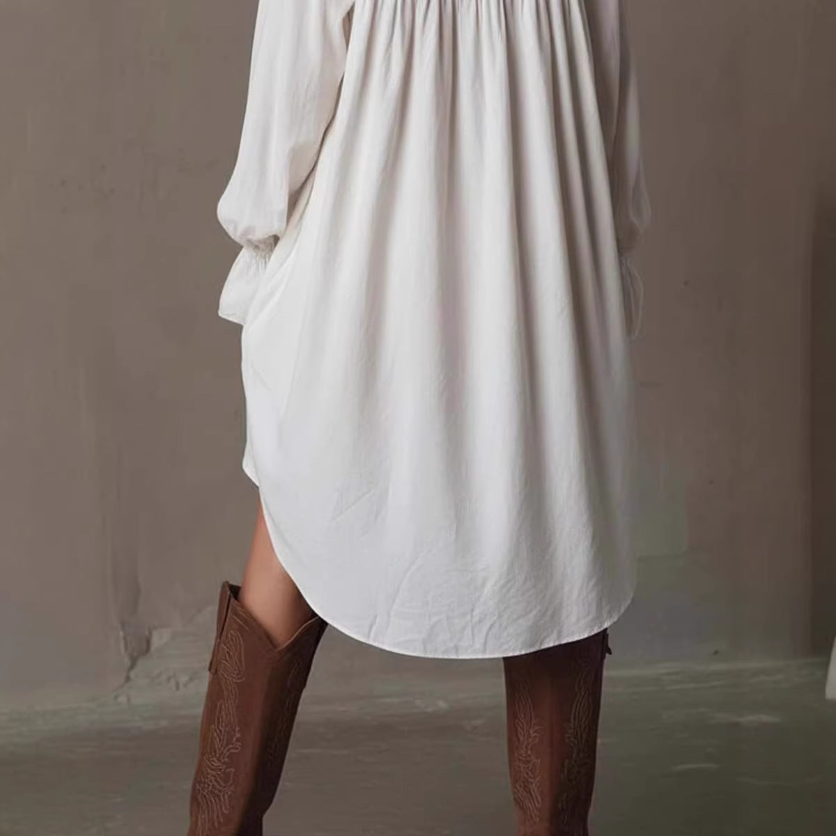 Notch-lapel Long-sleeve Flared-sleeve Button-front Mid-length Shirt