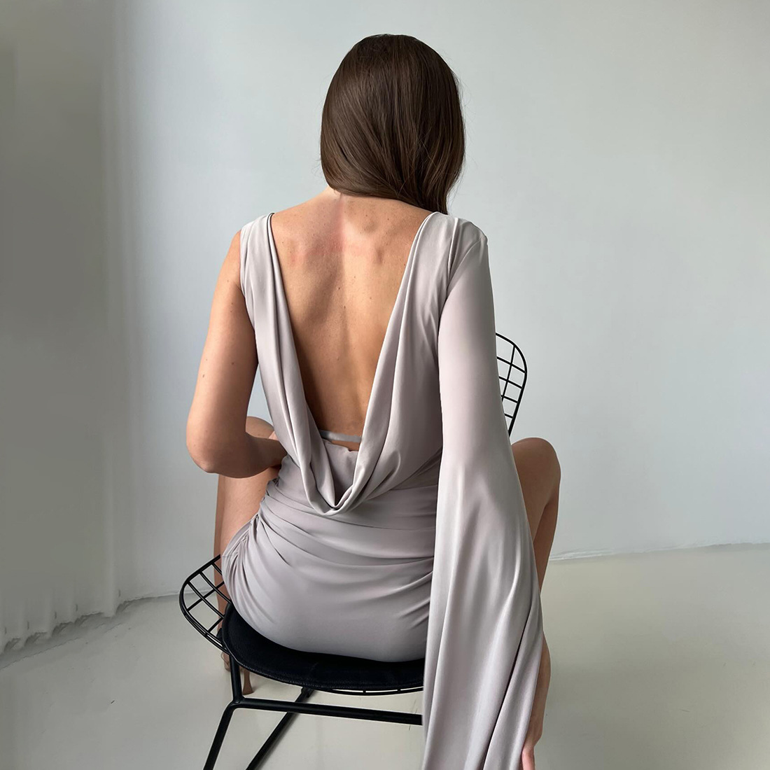 Trendy Elements: Solid color, asymmetrical design, open back