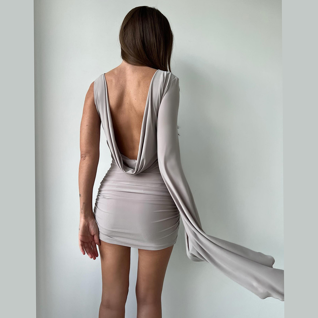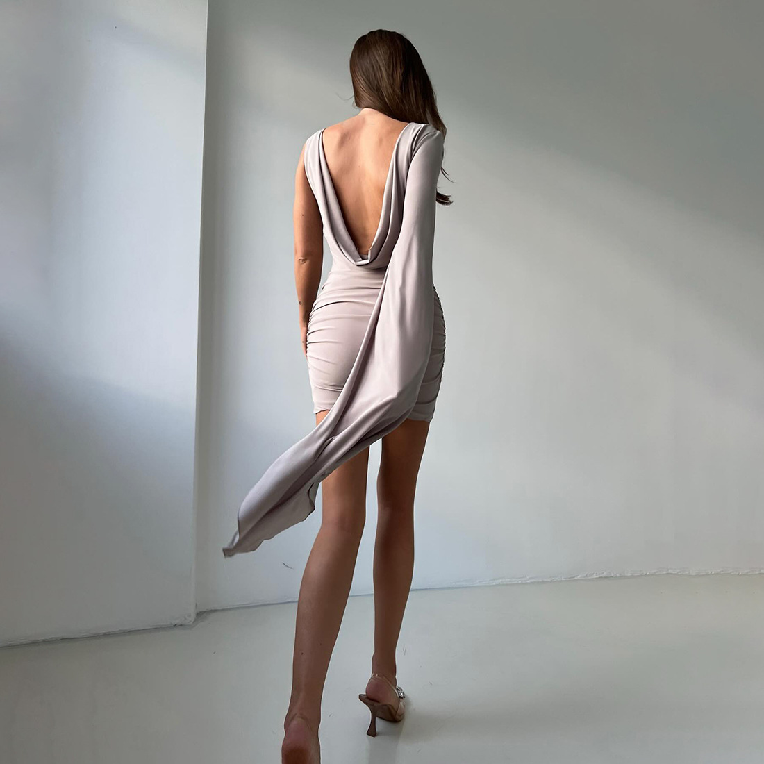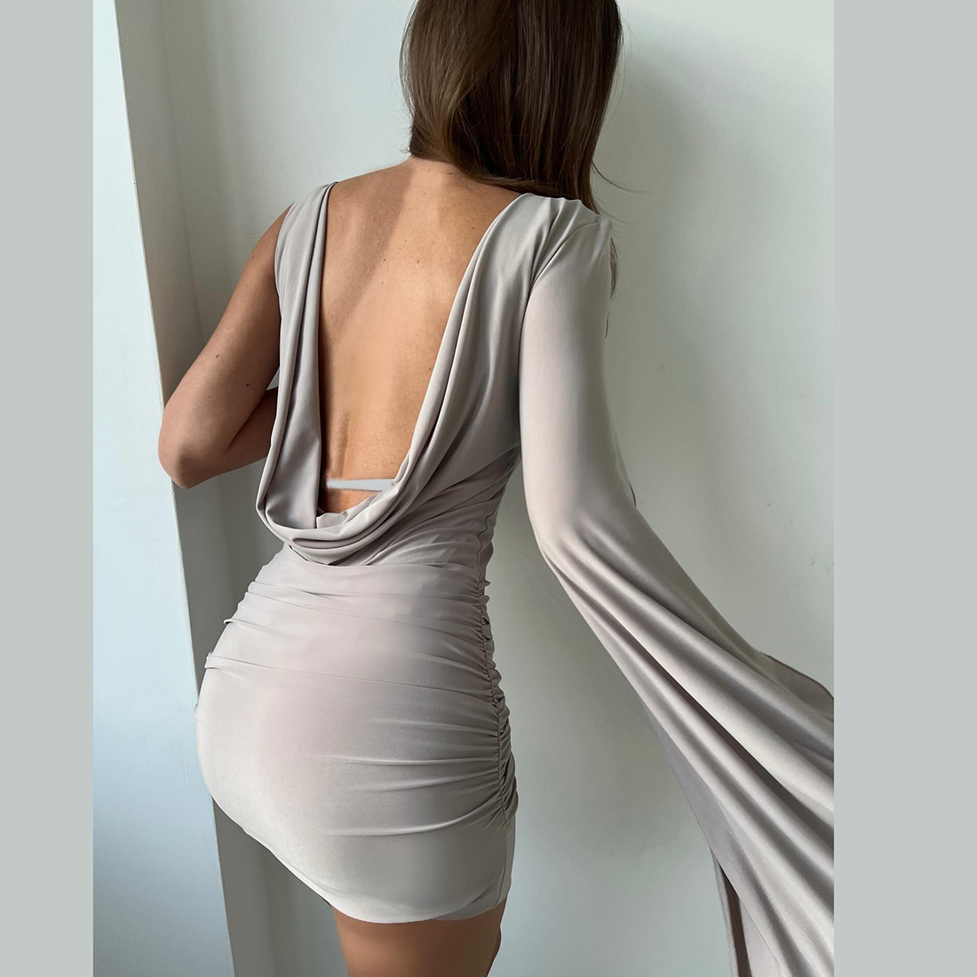 Womens Irregular One-Shoulder Backless Bodycon Dress