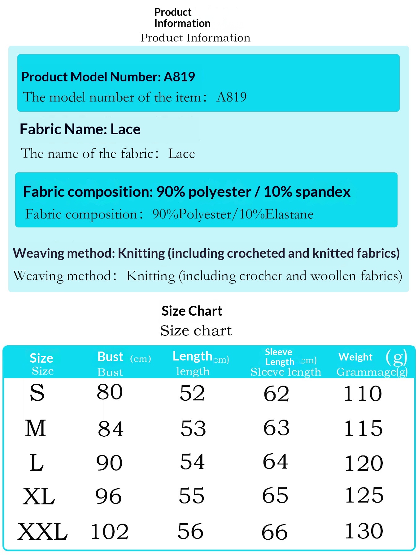 Sizes: S, M, L, XL, XXL