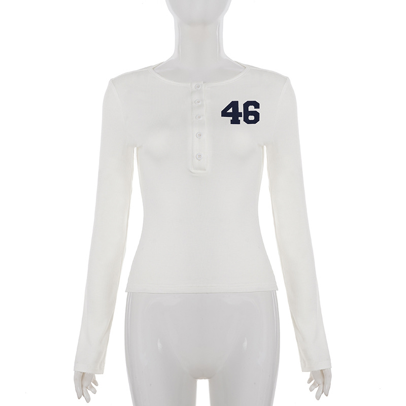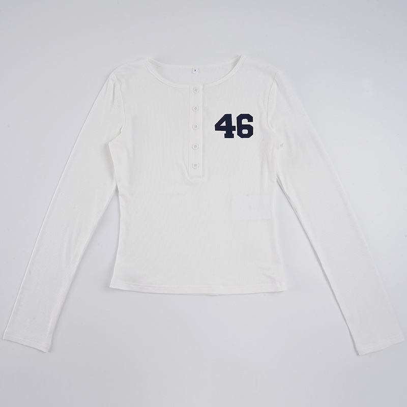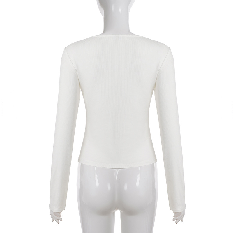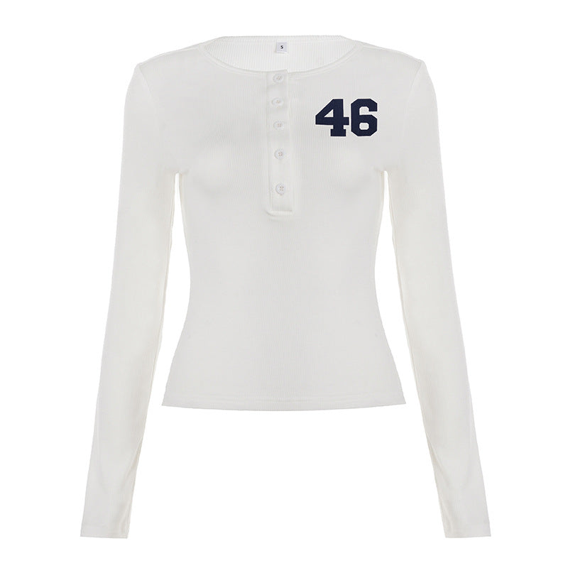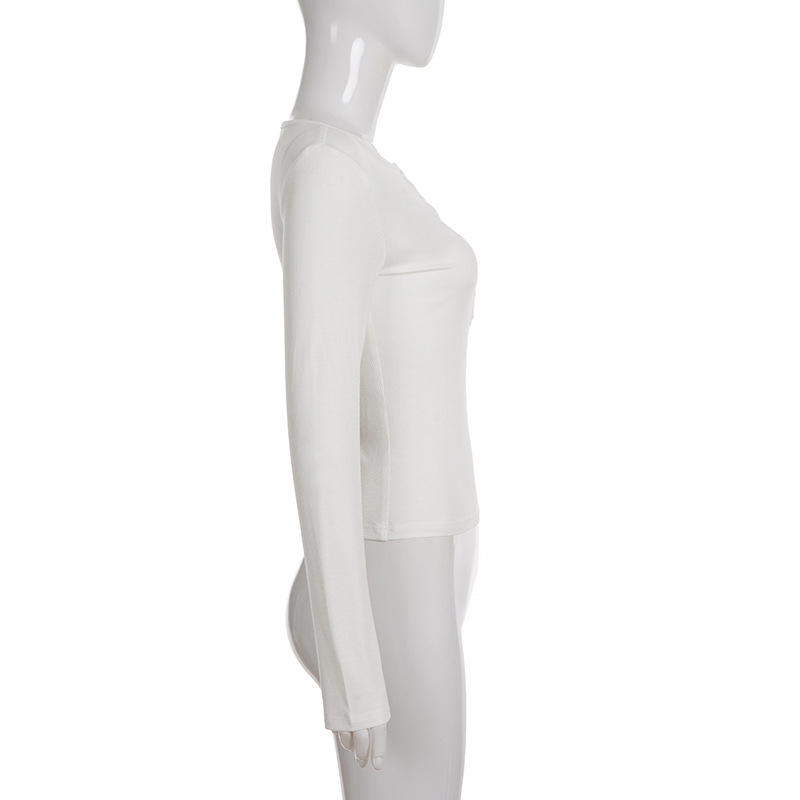 Button-down Semi-open-collar Slim-fit Long-sleeve Casual Top