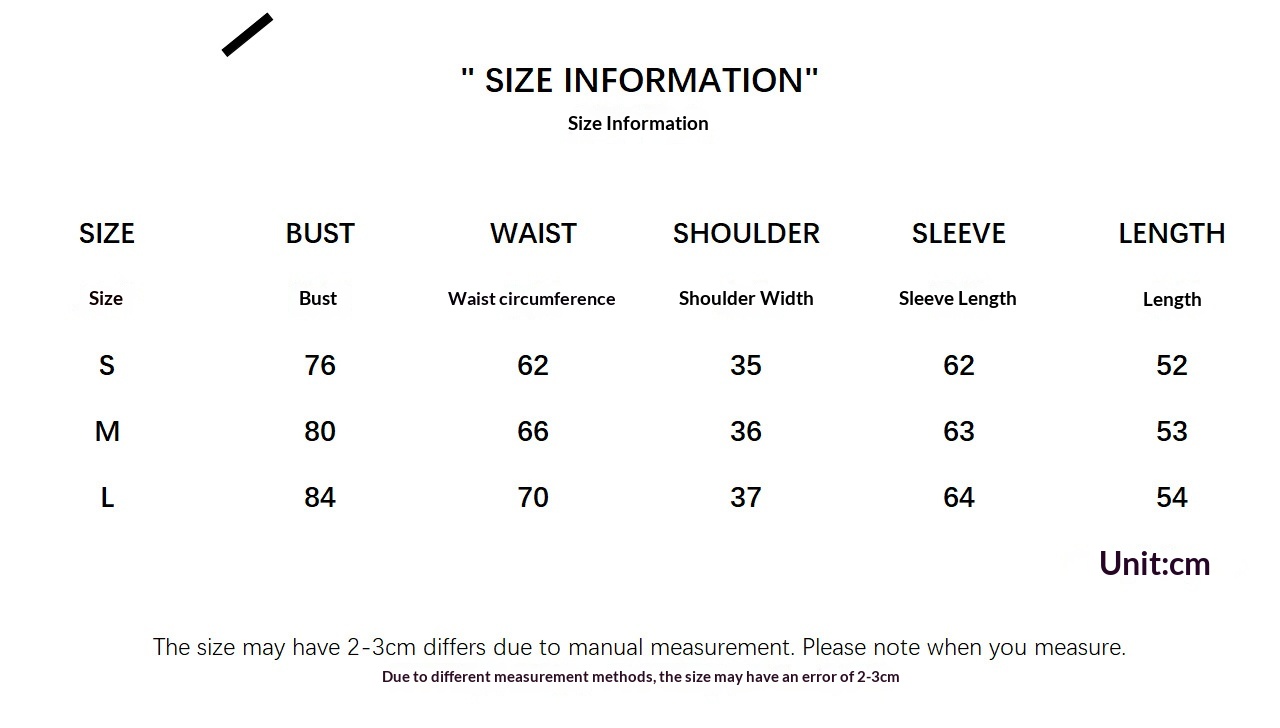 1. Asian sizes are 1 to 2 sizes smaller than European and American people. Choose the larger size if your size between two sizes. Please allow 2-3cm differences due to manual measurement. 2. Please check the size chart carefully before you buy the item, if you don't know how to choose size, please contact our customer service. 3.As you know, the different computers display colors differently, the color of the actual item may vary slightly from the following images.