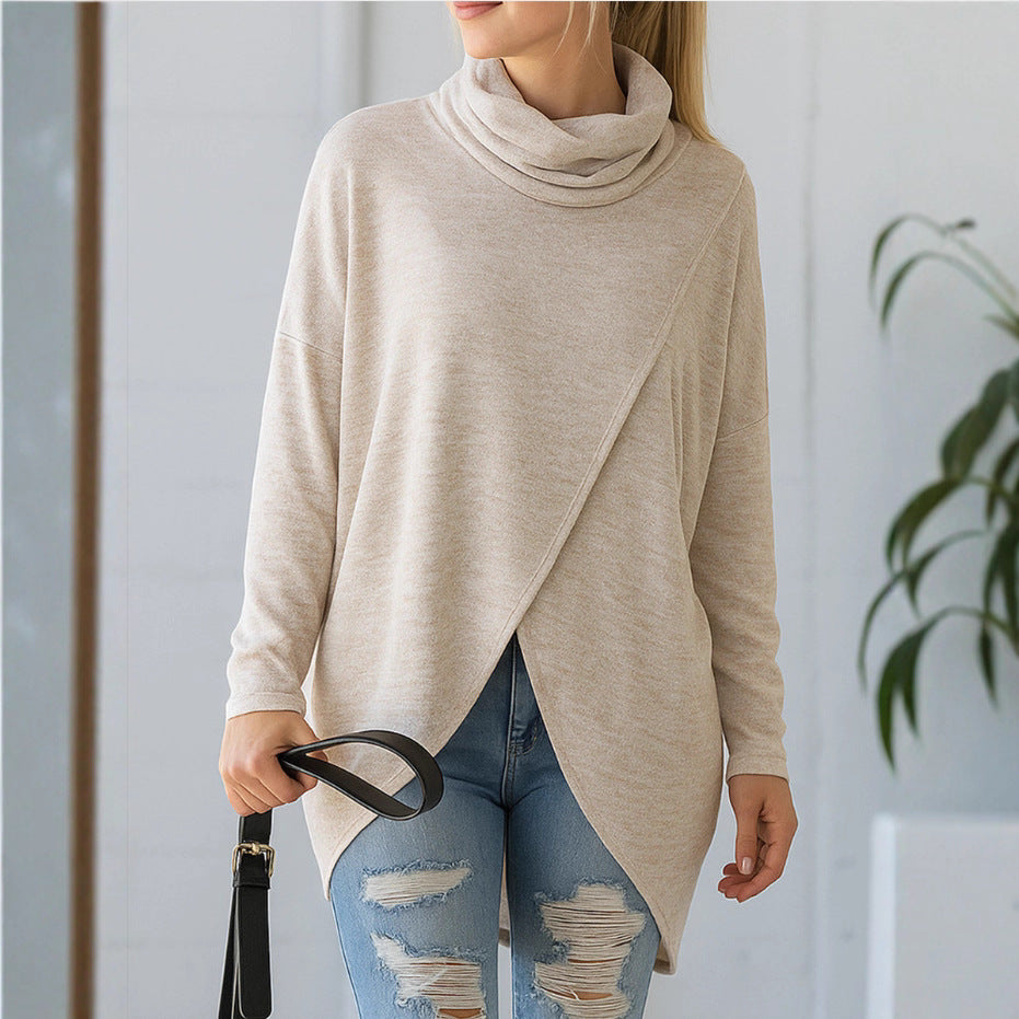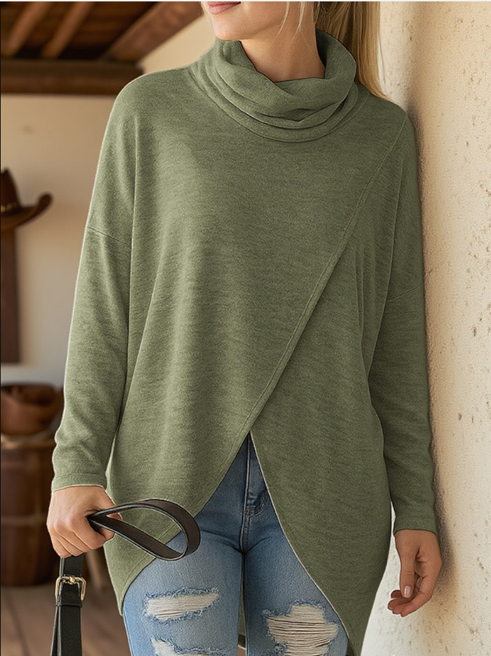 Casual, Relaxed-fit, Fashionable Long-sleeve Solid-color Turtleneck Knit Top