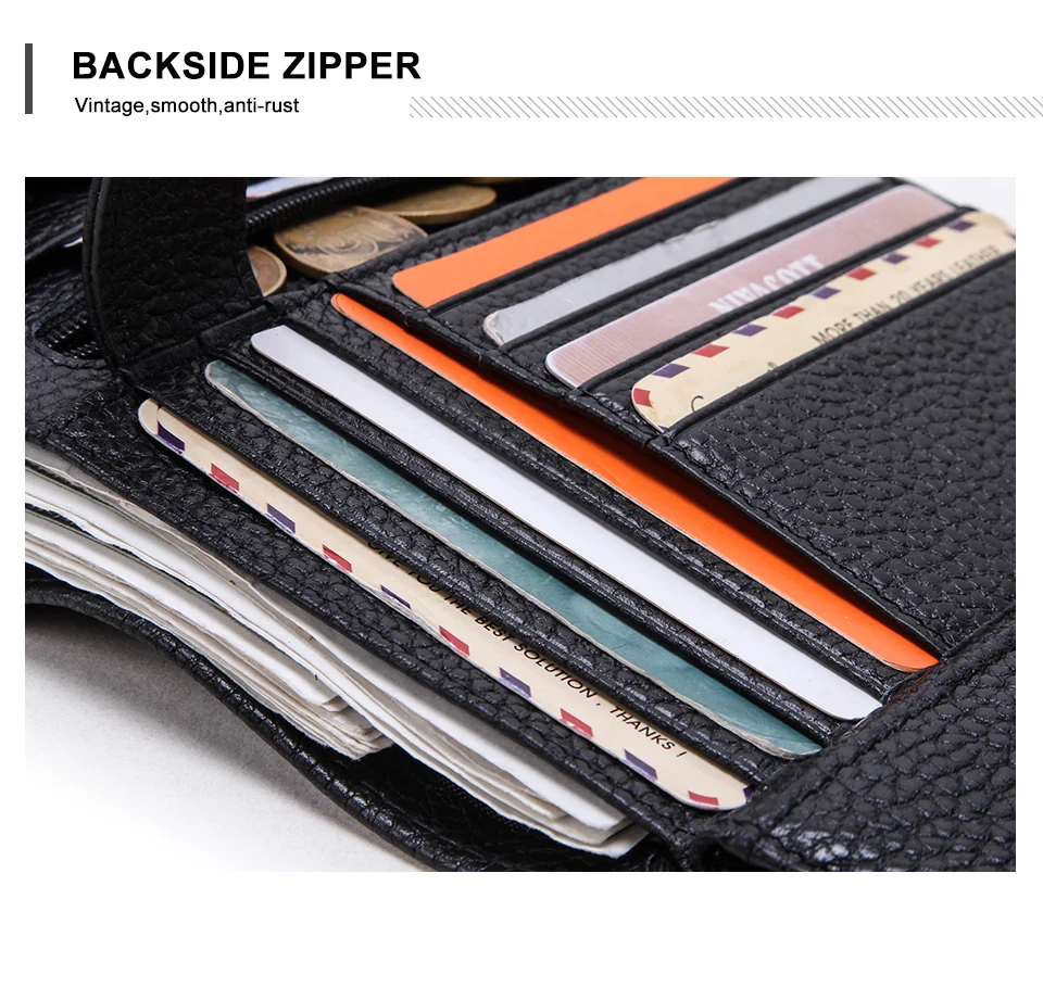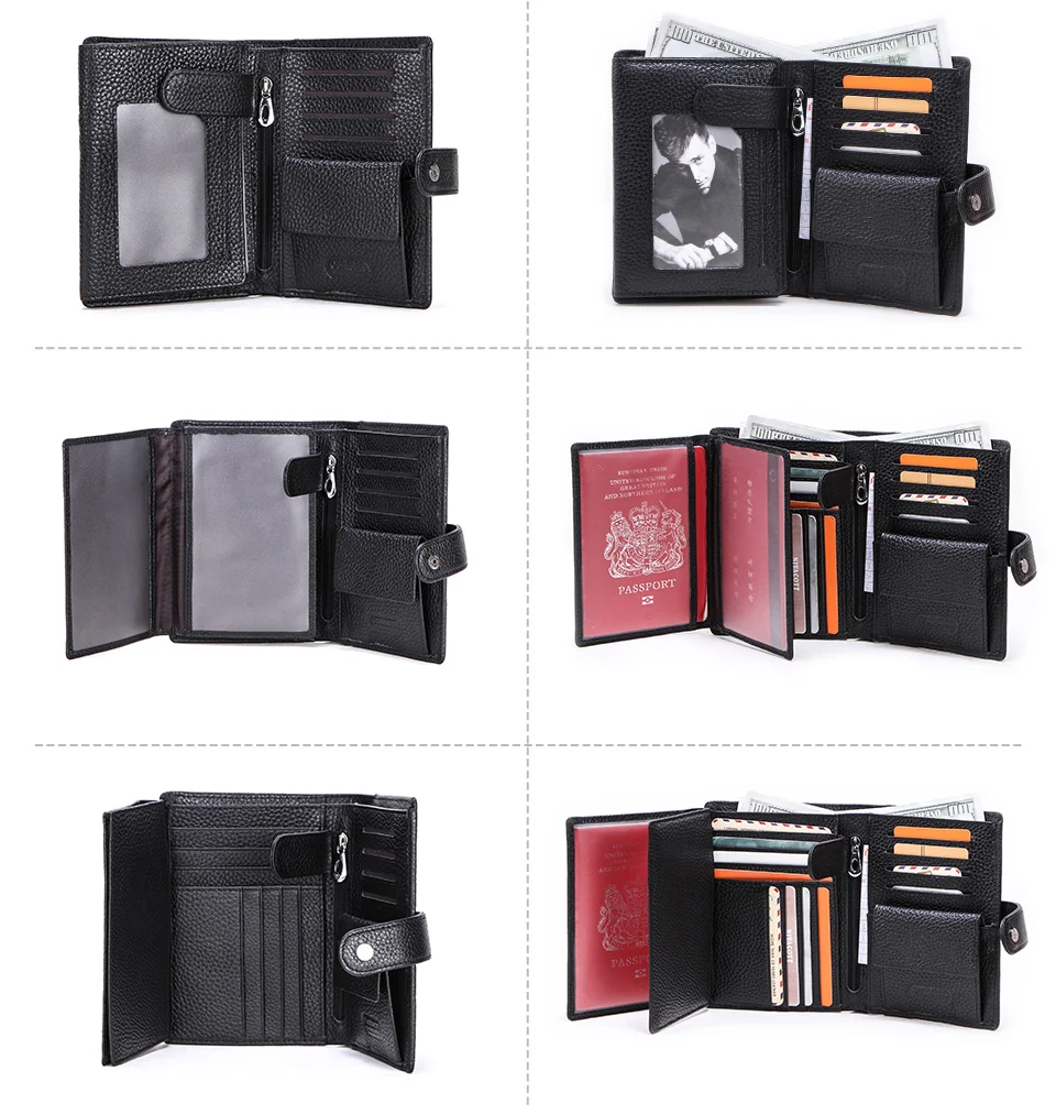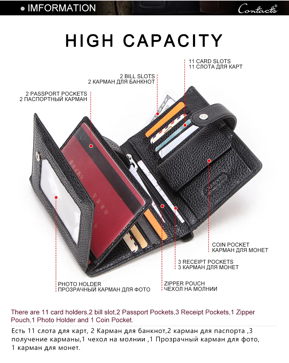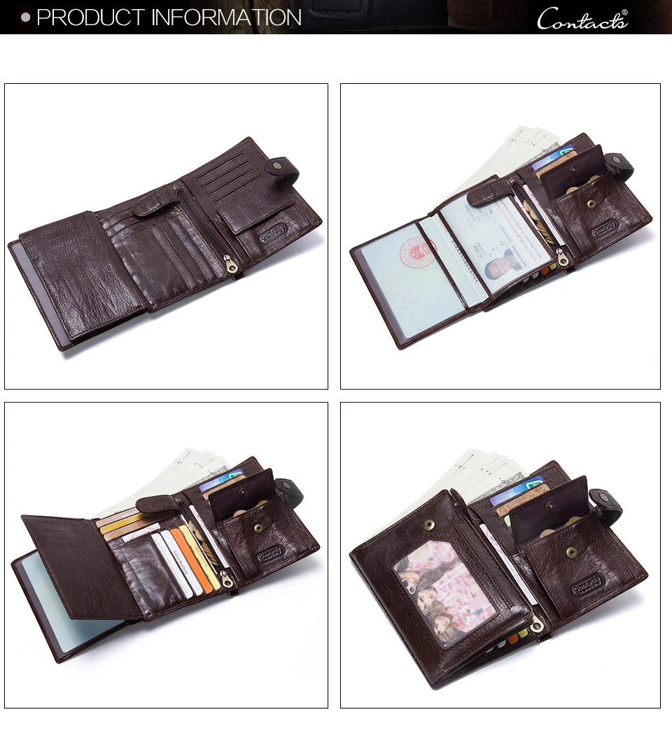 CONTACT'S Genuine Leather Men Wallet Short Trifold Casual Men'S Wallet Coin Purses Card Holders Money Clips Passport Wallet