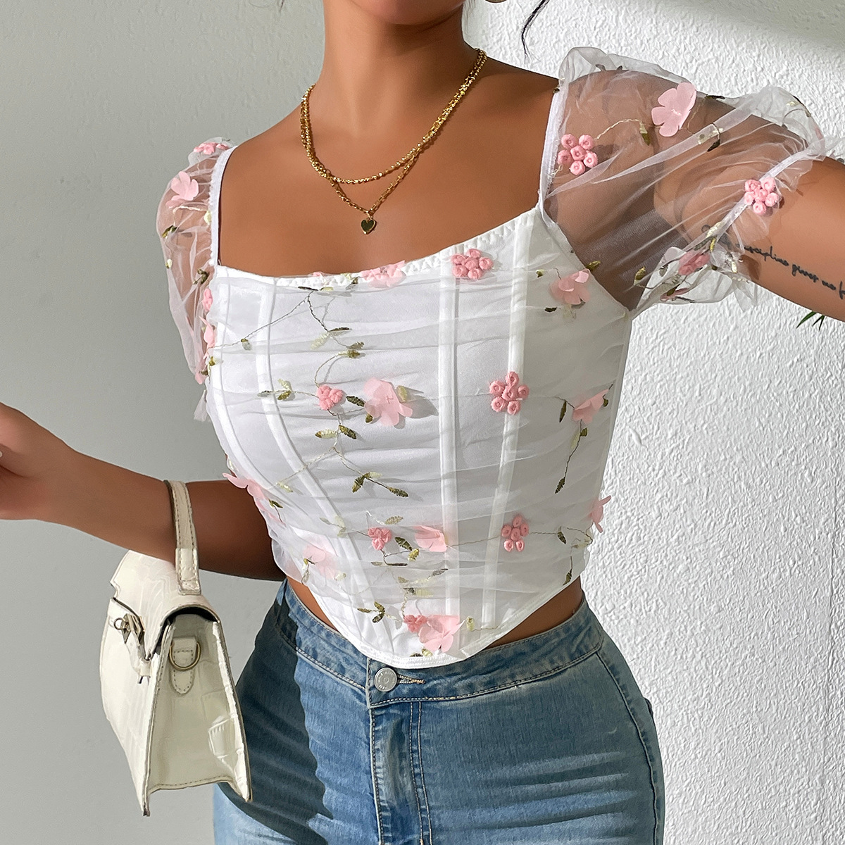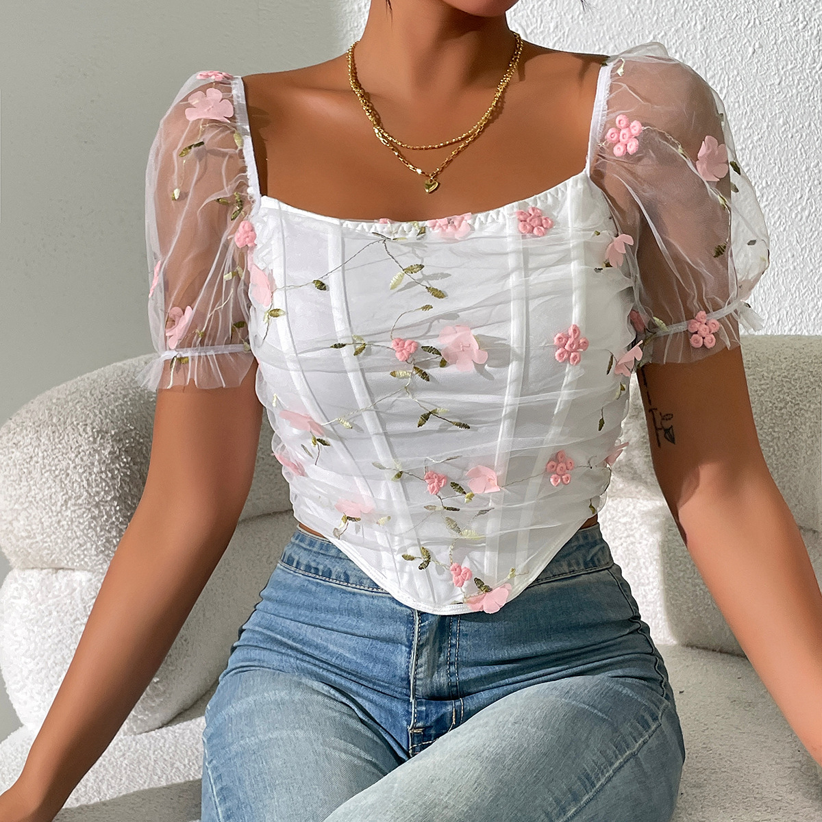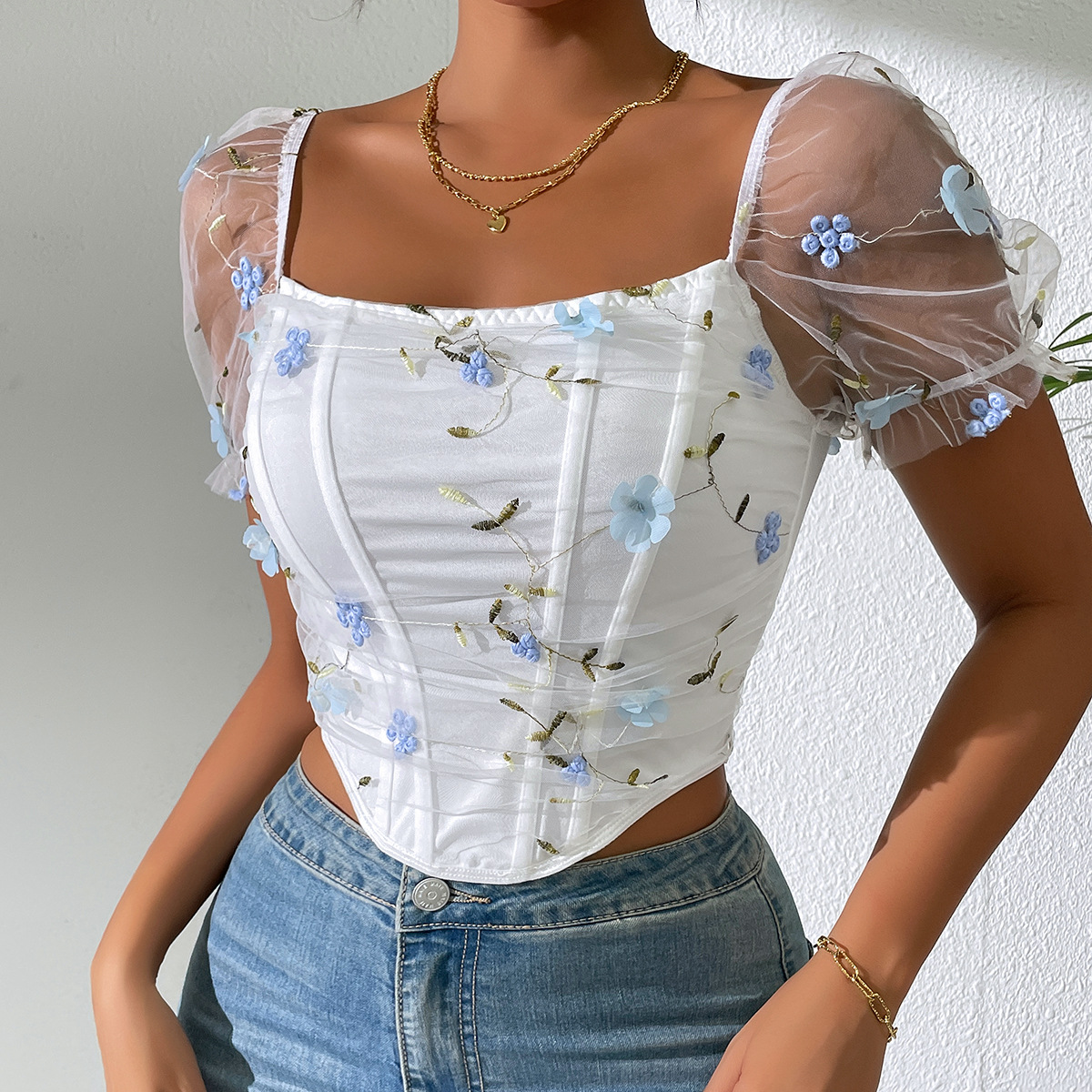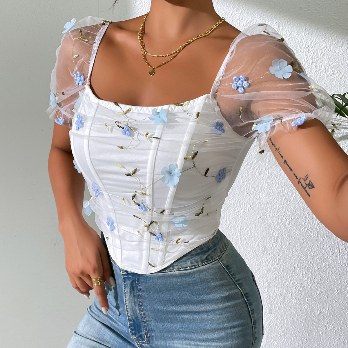 Embroidered Double-Layer Mesh Fishbone Slim-Fit Tank Top
