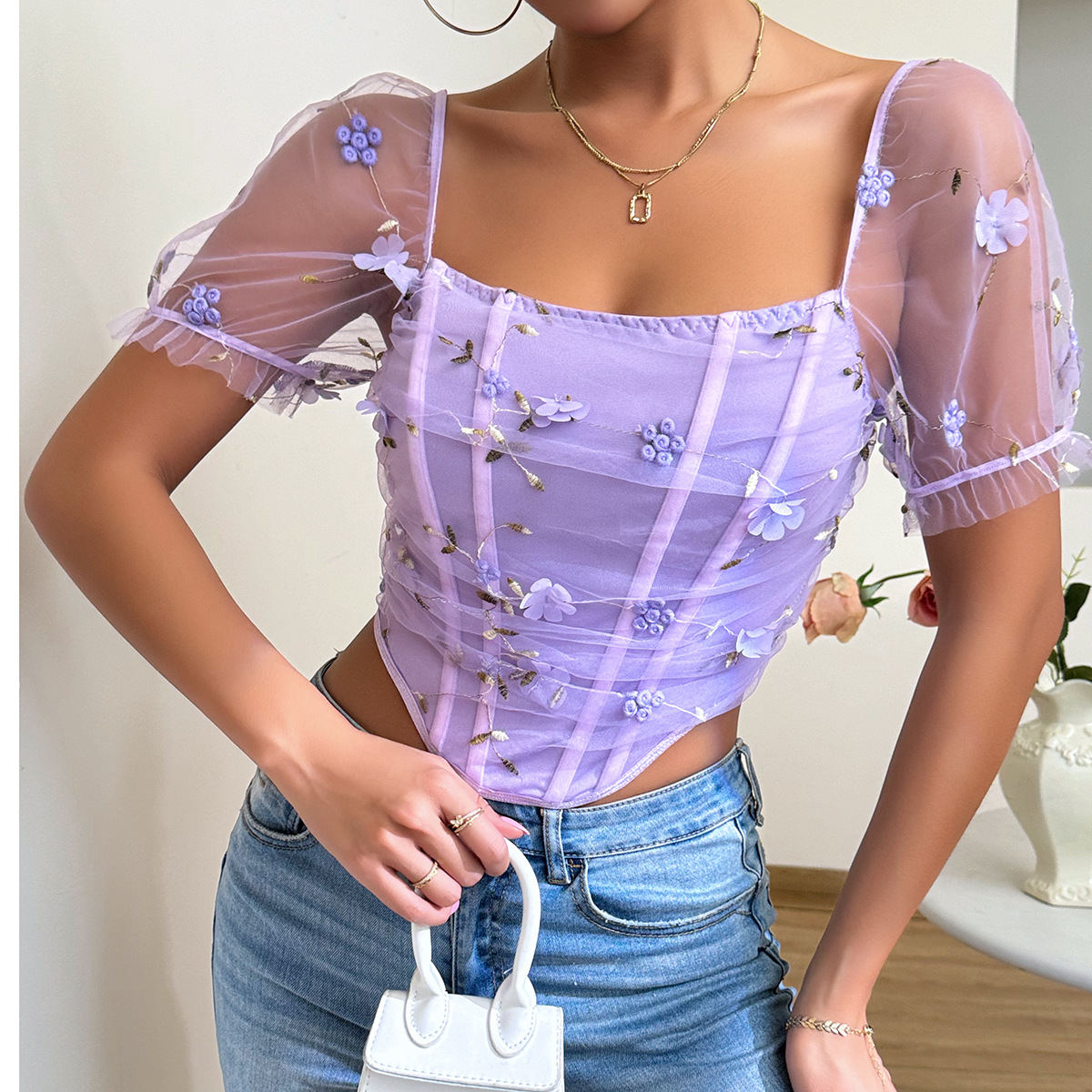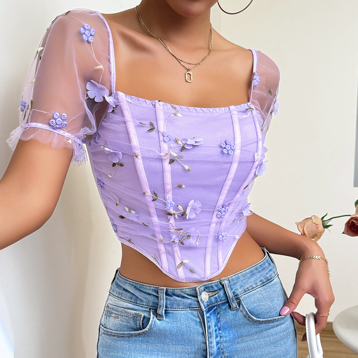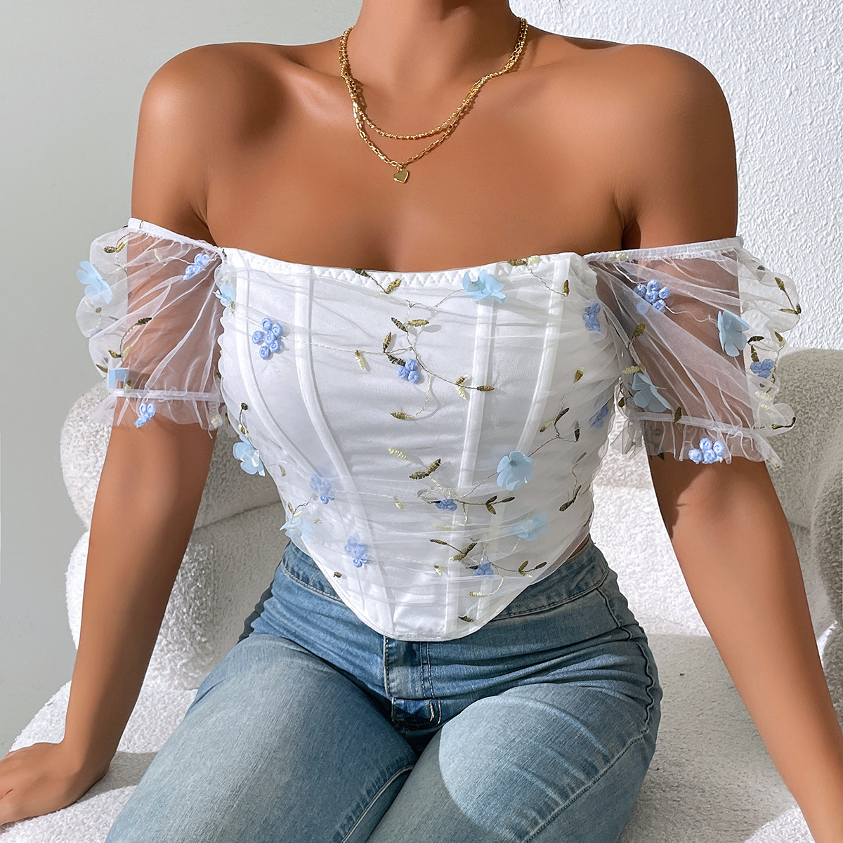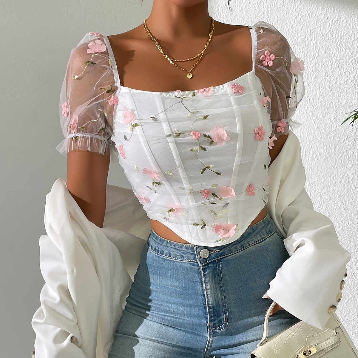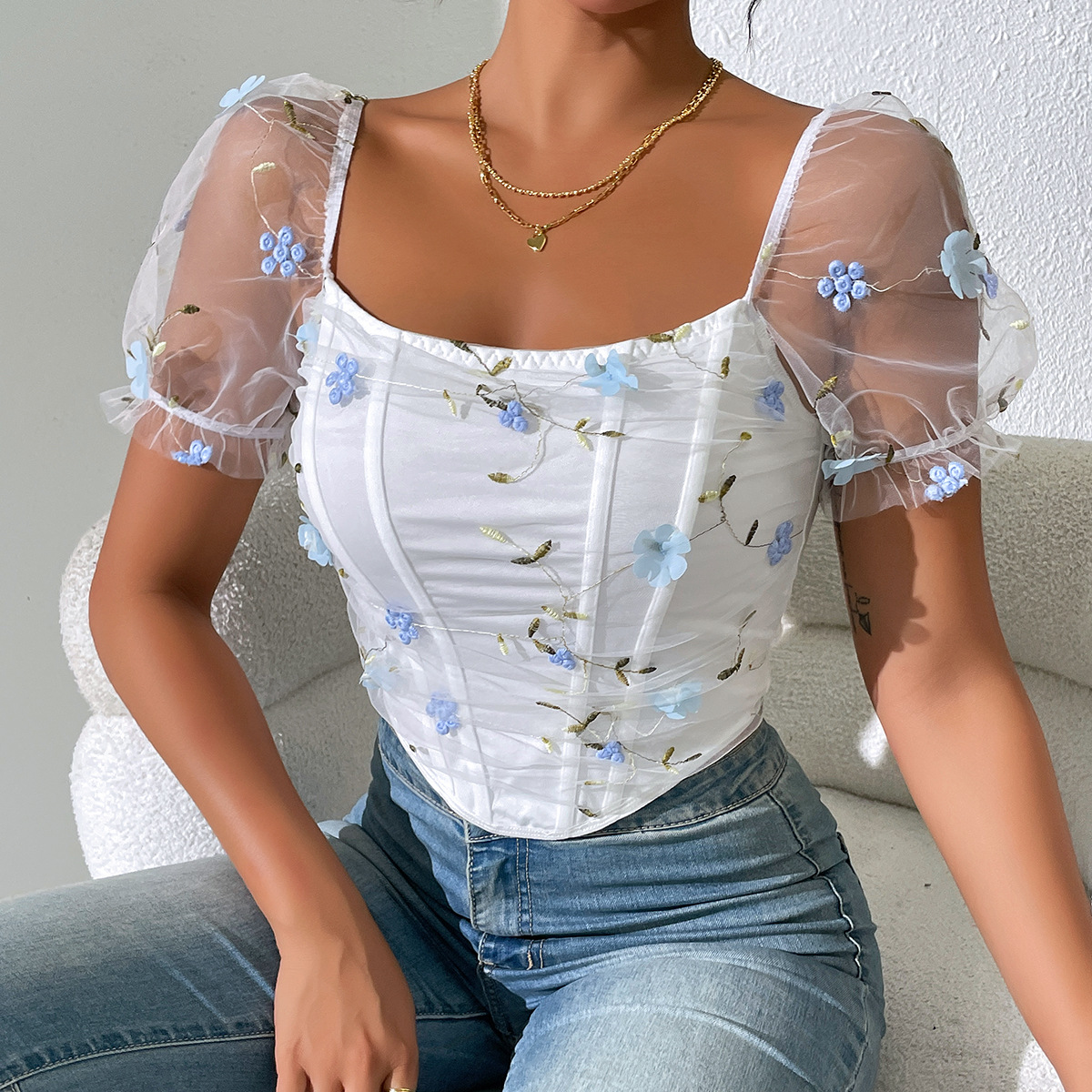Embroidered Double-Layer Mesh Fishbone Slim-Fit Tank Top