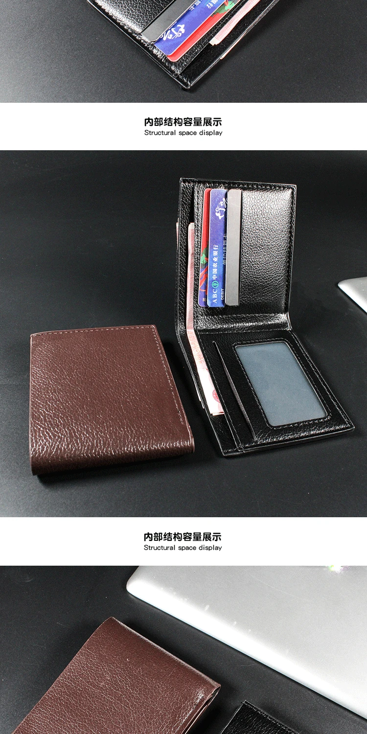 Men's Wallet Leather Double fold wallet slim credit card/ID clip and coin wallet Business wallet.