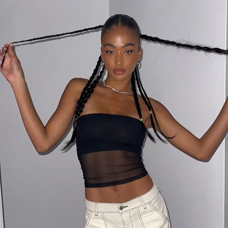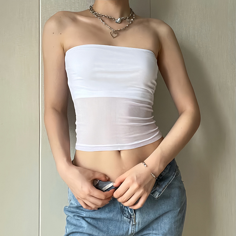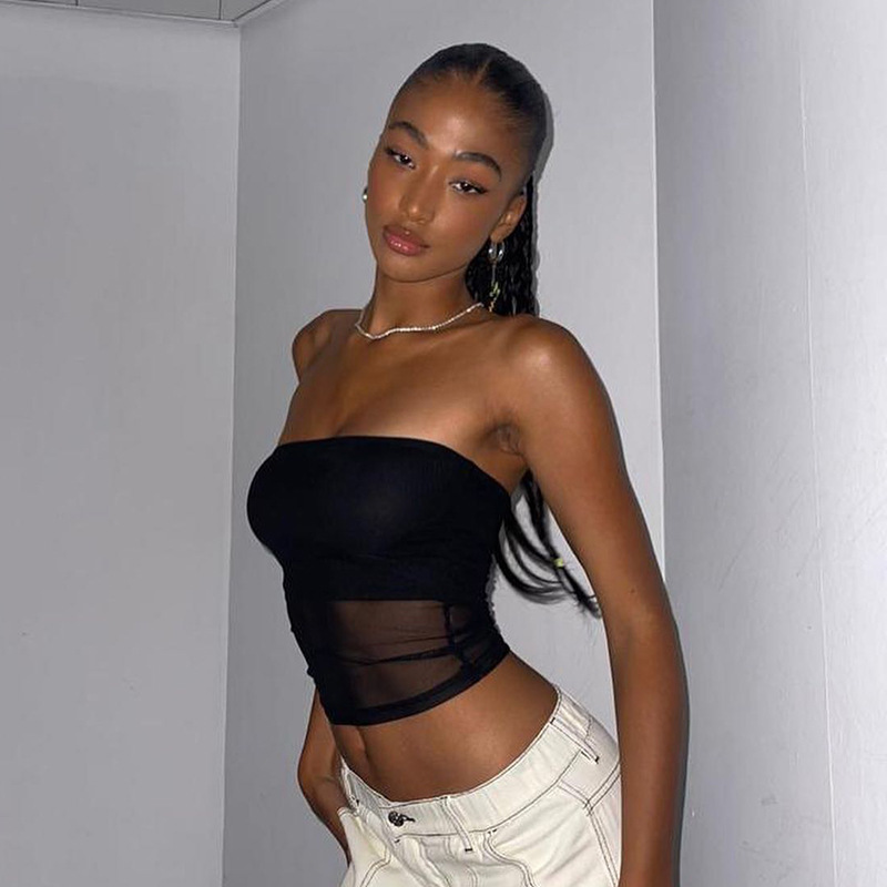 Mesh With Midriff-baring Design Casual Womens Tube Top