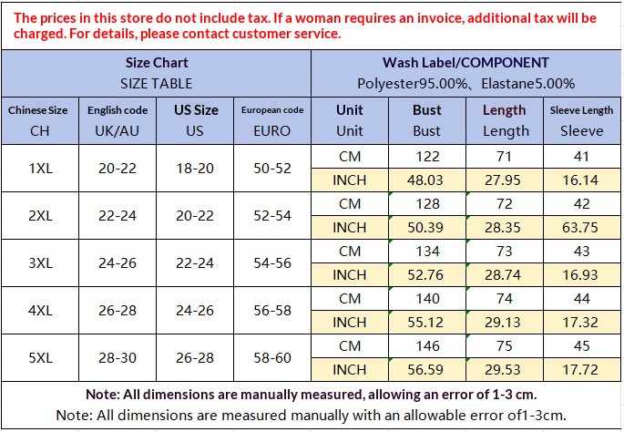 Sizes: 1XL, 2XL, 3XL, 4XL, 5XL