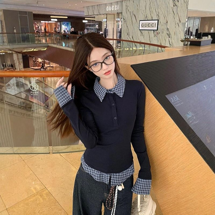 Polo Collar Fake Two Piece Bottoming Slim Fit Top