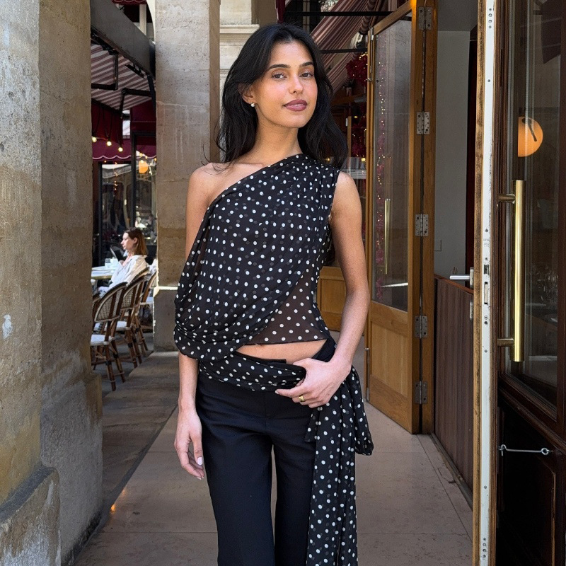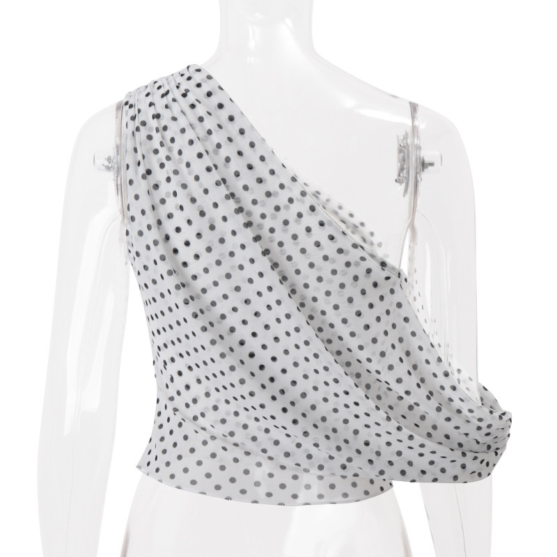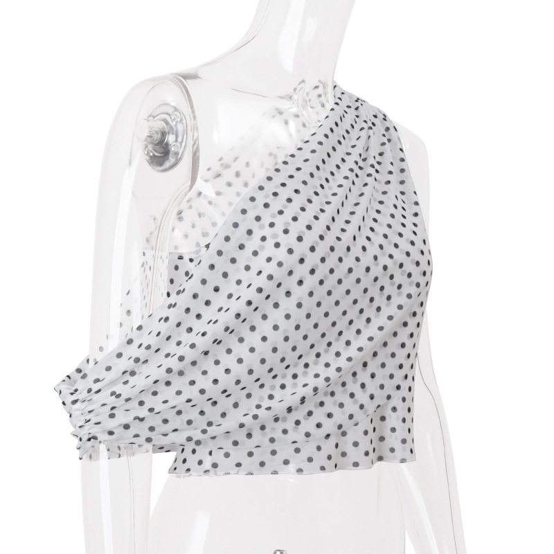 Sexy Off-Shoulder Polka-Dot Chiffon Sheer Irregular Tank Top