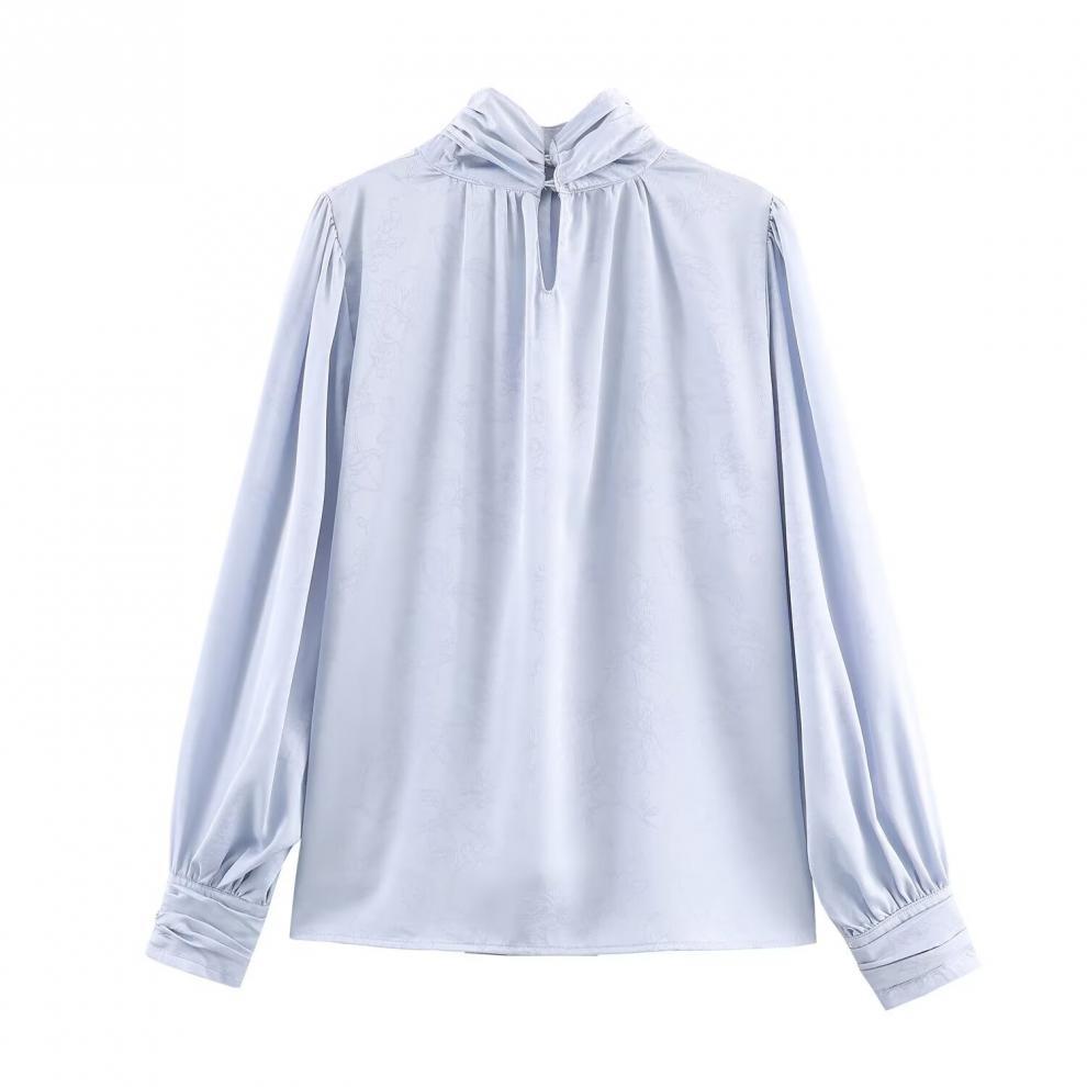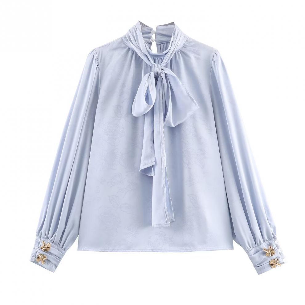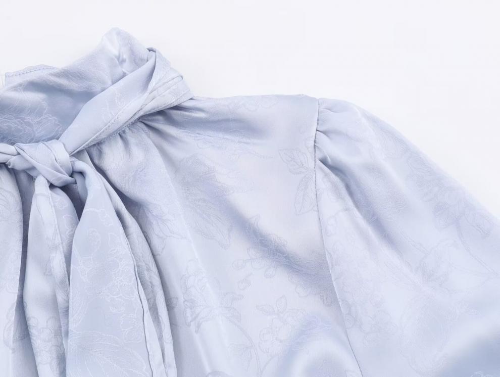 Sleek Jacquard Silk-textured Blouse With A Bow Detail