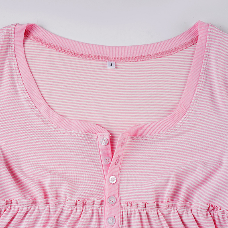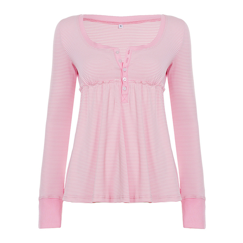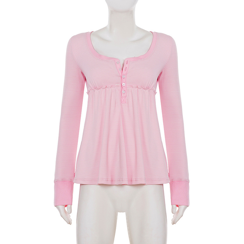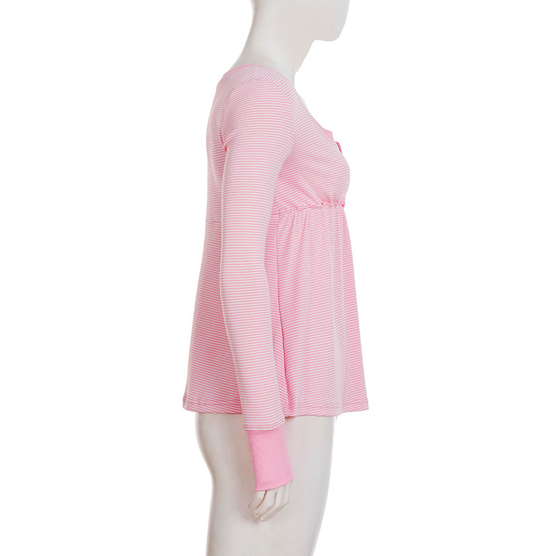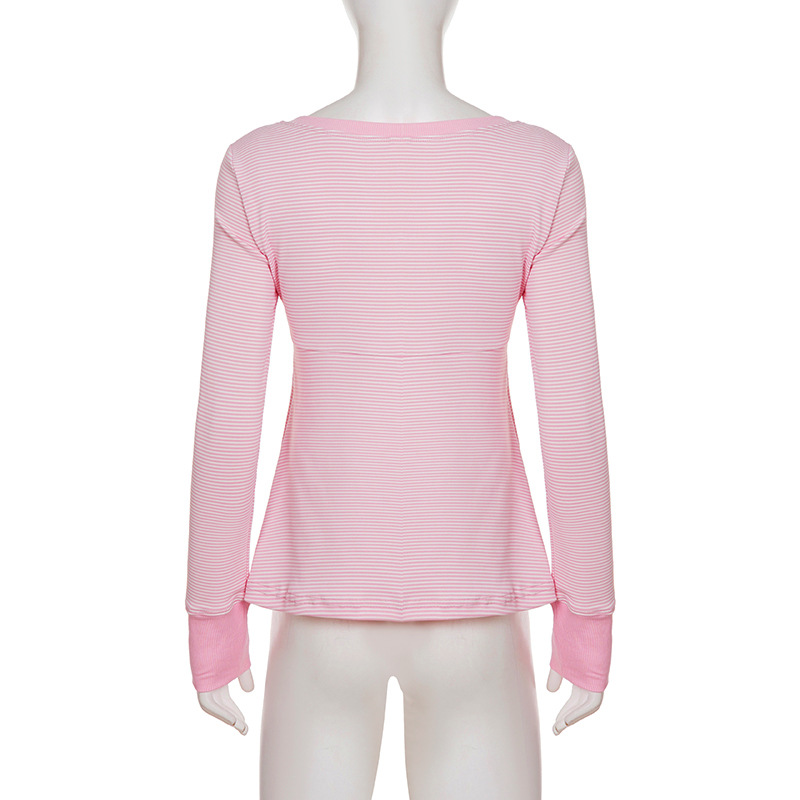 Soft Girl Pure Alluring Style U-Neck Semi-Open Collar Striped Knit Sweater