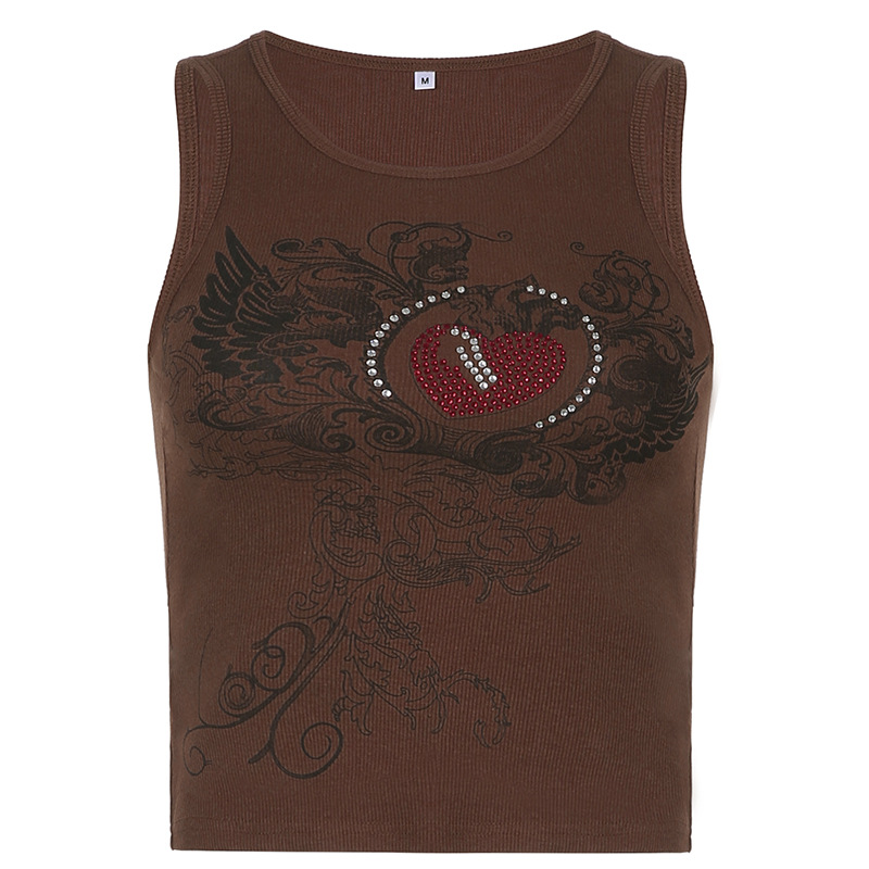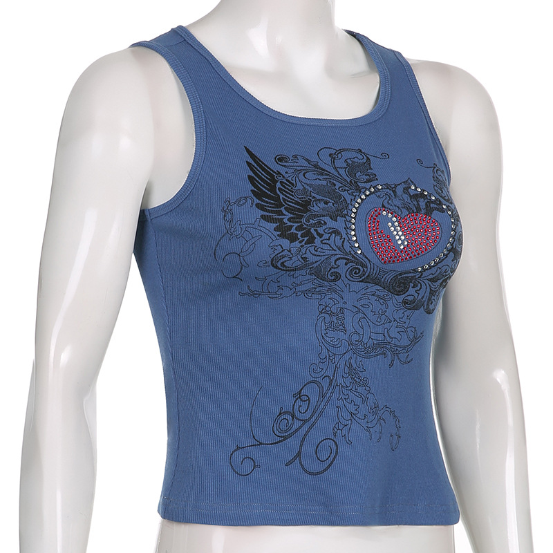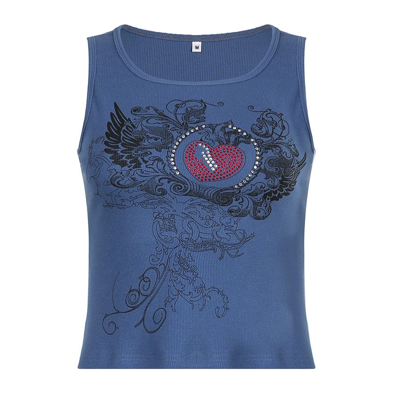 Summer Womens Stylish Rhinestone-printed Slim-fit Tank Top
