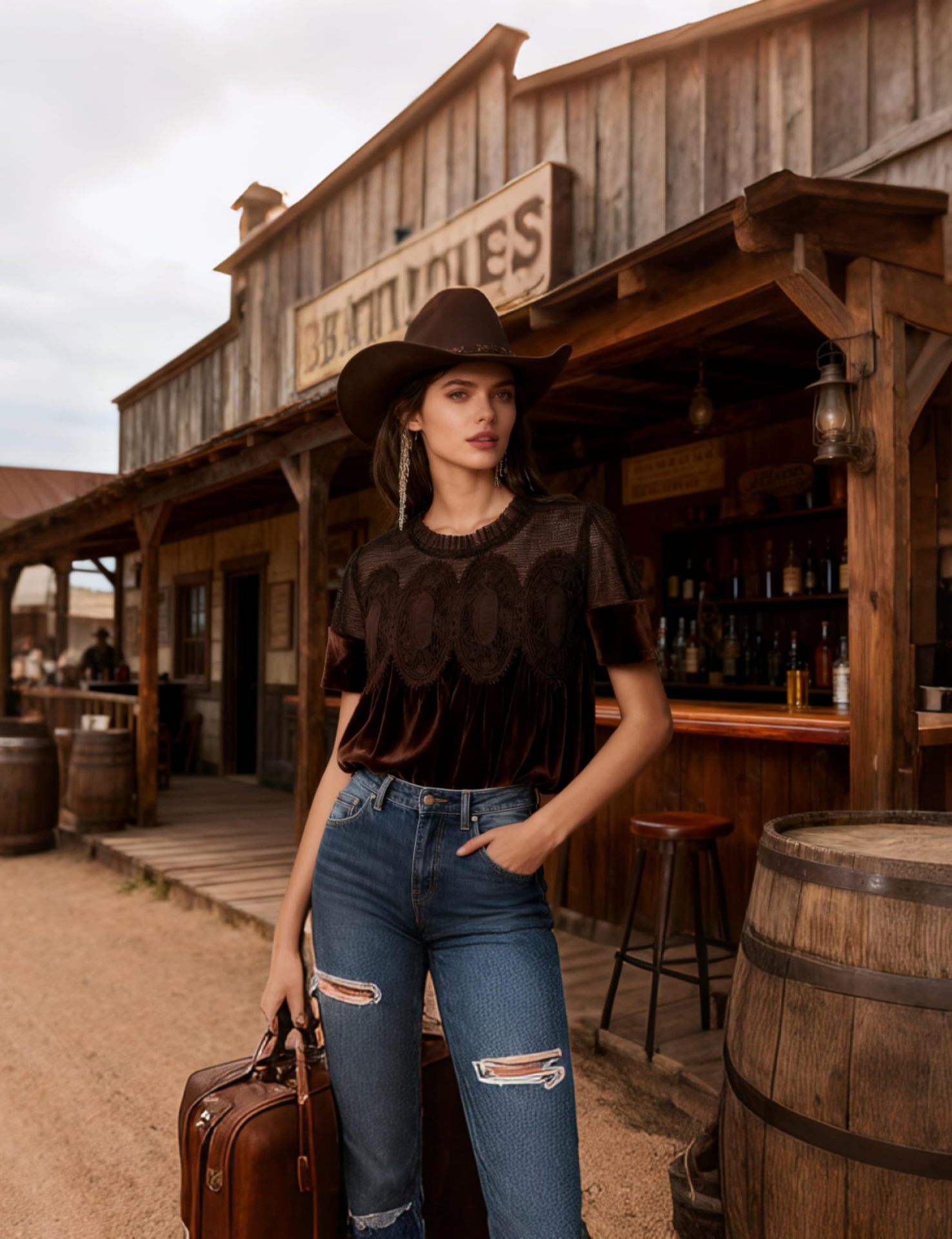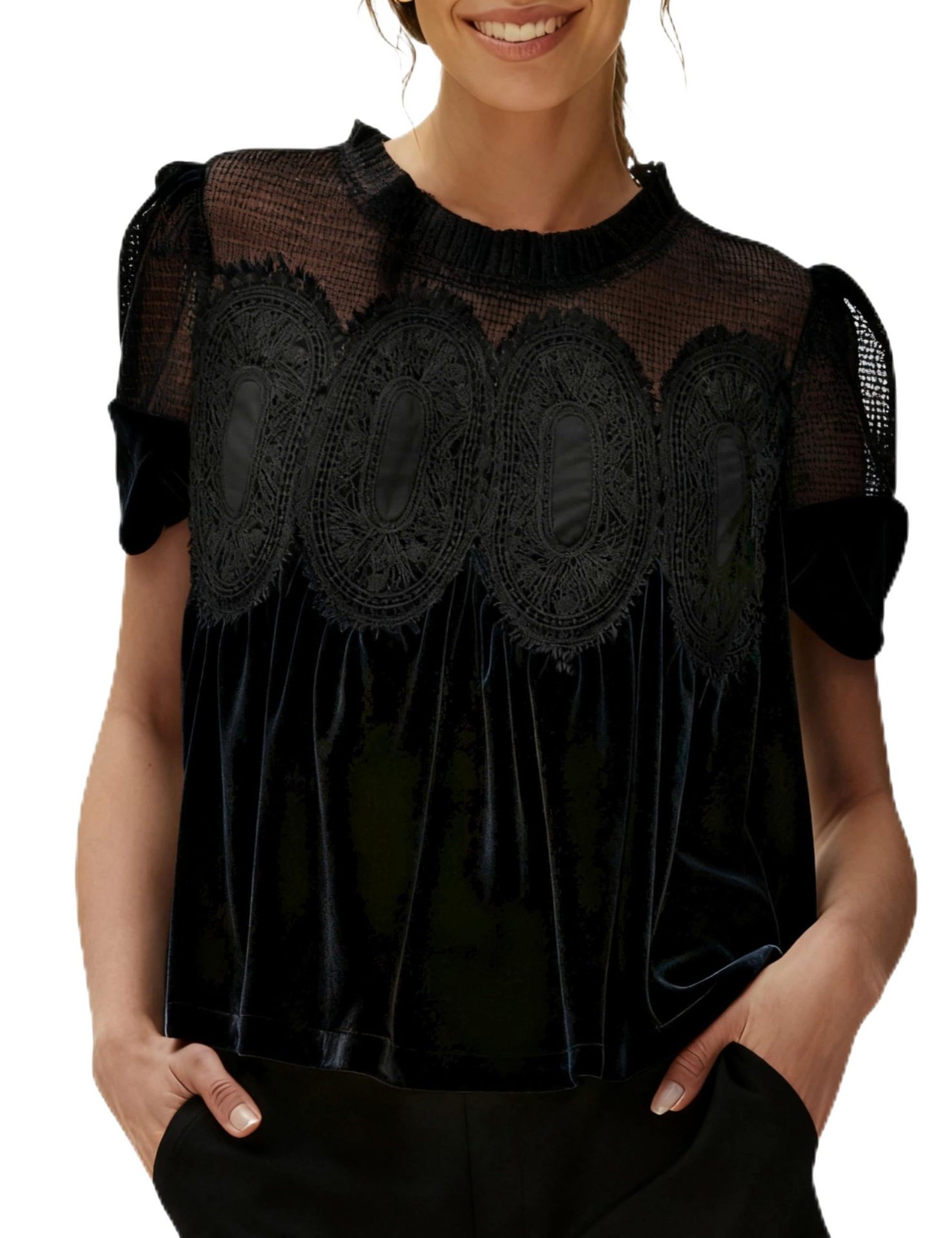 Women's Fashion Mesh Embroidered Crew-Neck Pullover Solid Color Top