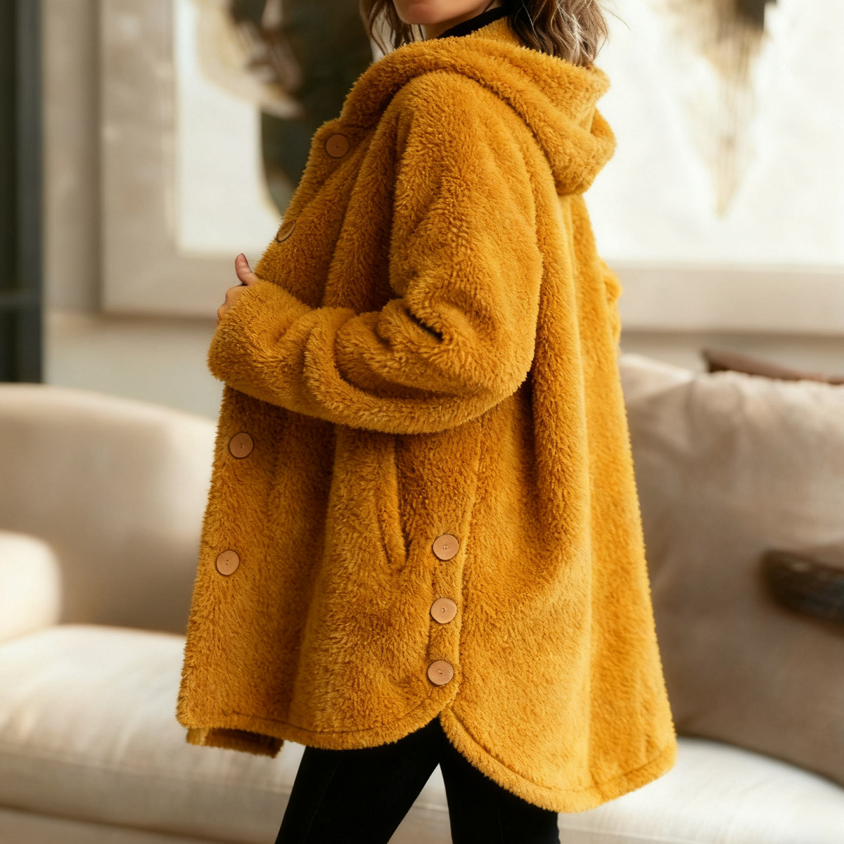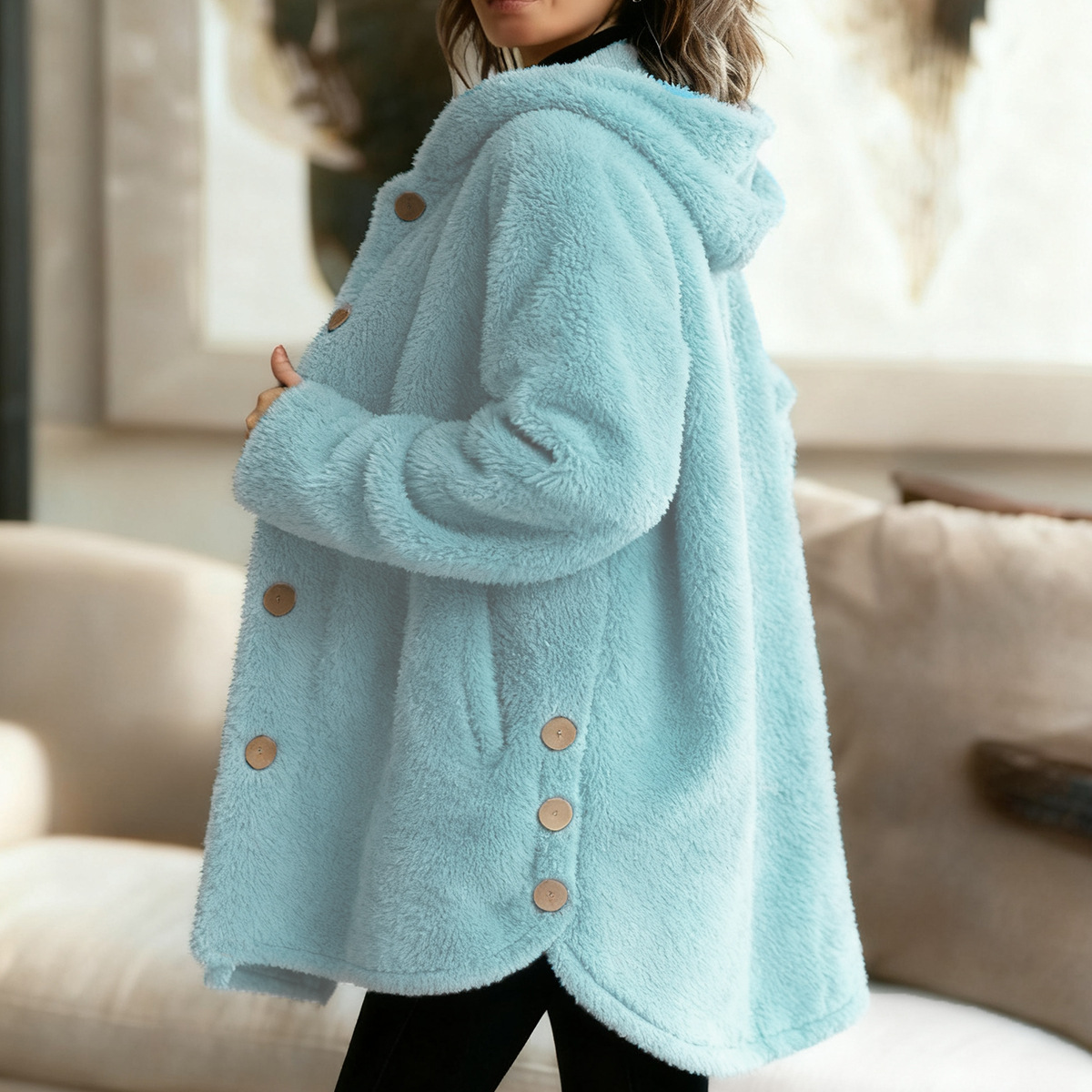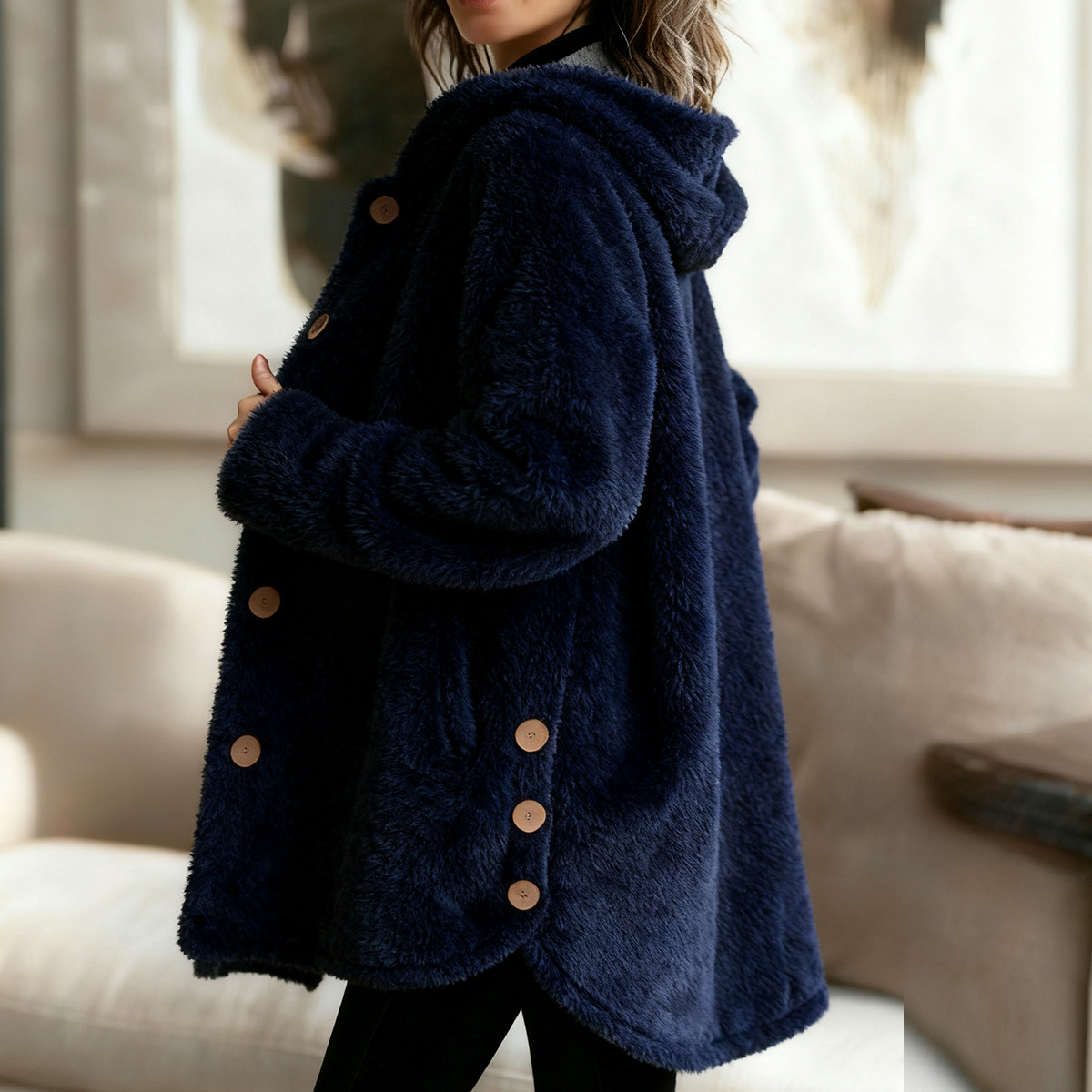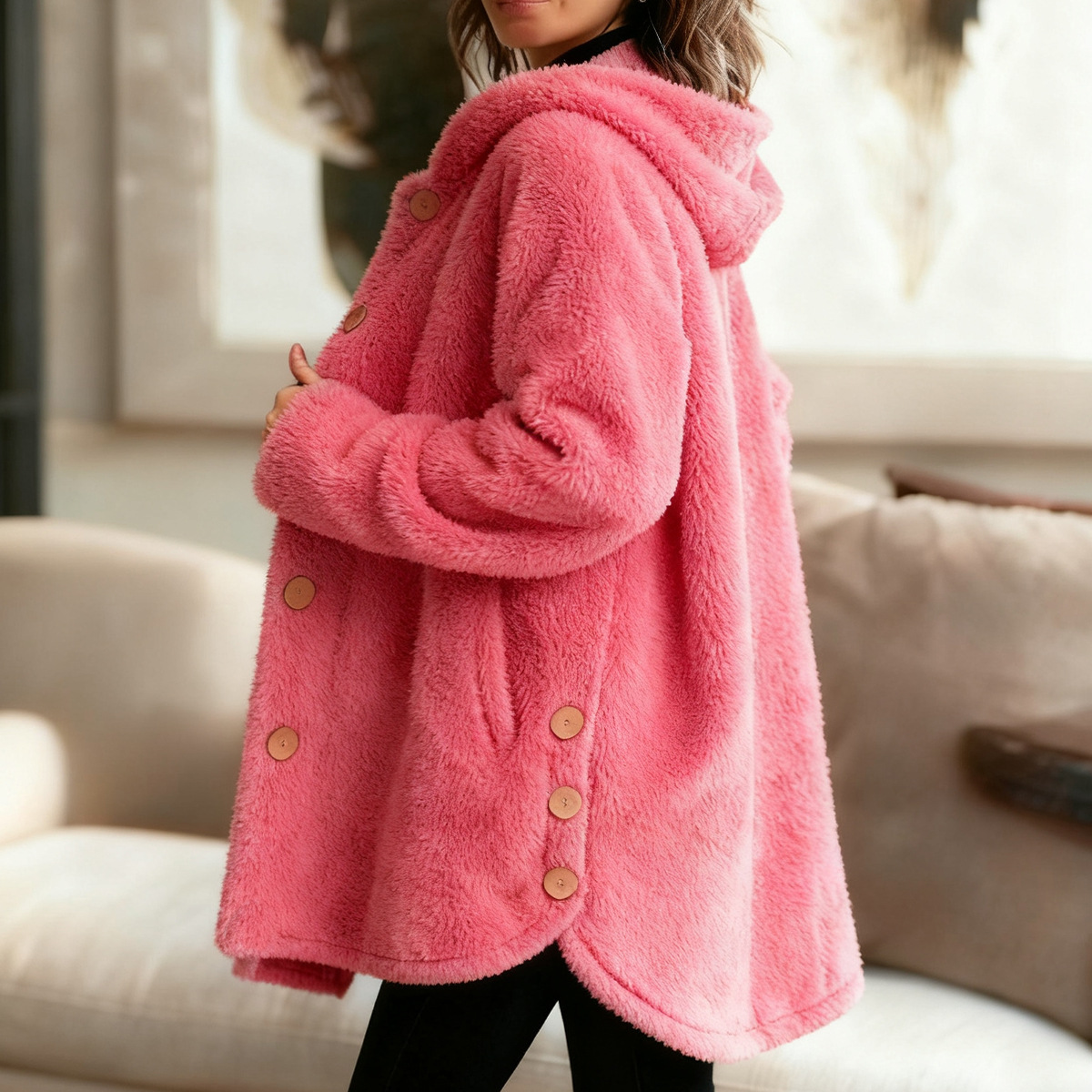 Women's Loose Hooded Fleece Casual Jacket