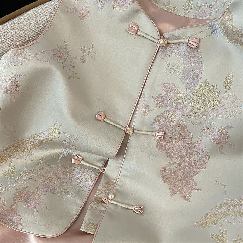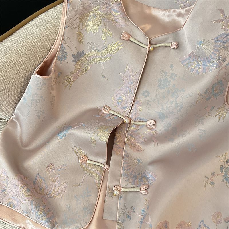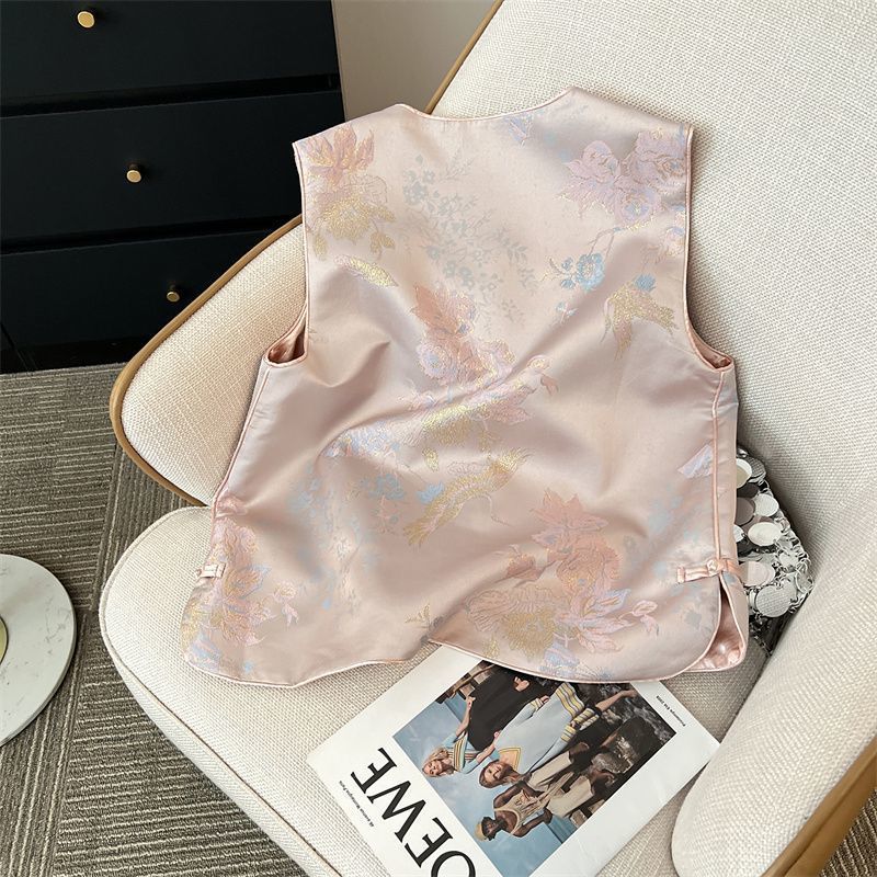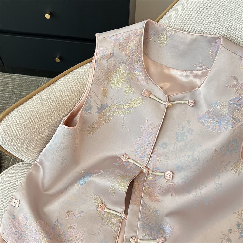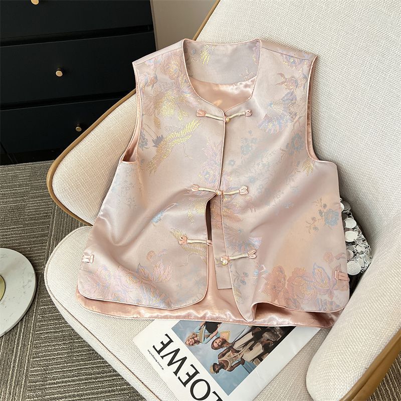 Womens Sleeveless New Chinese-Style Frog-Button Waistcoat Top