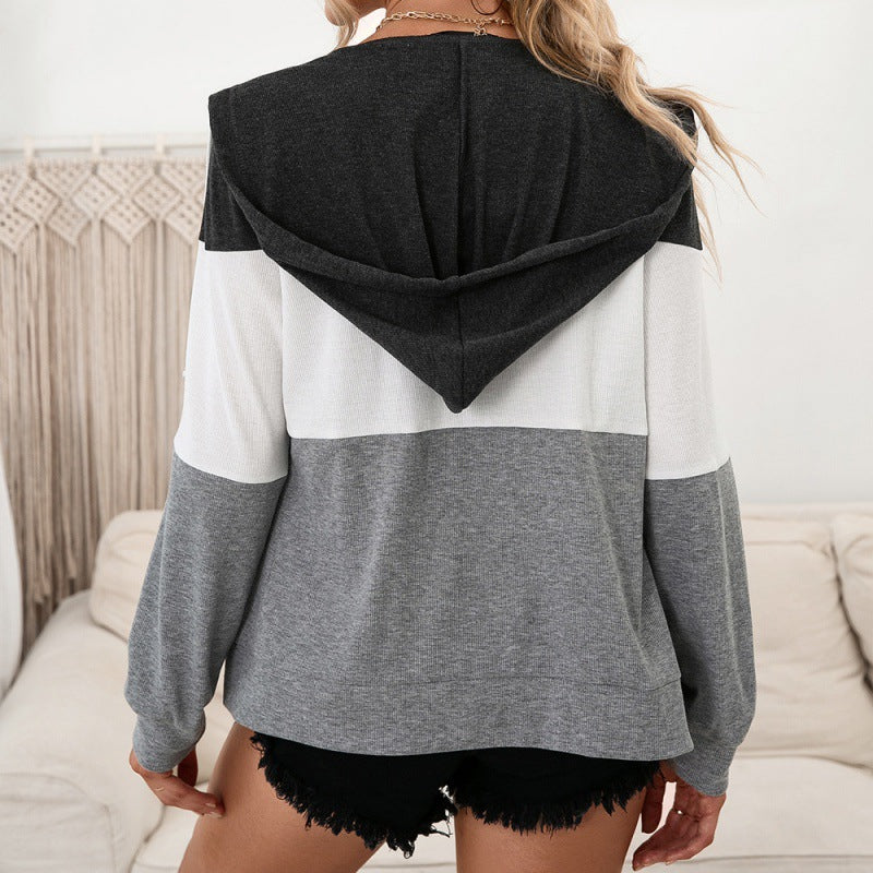 Contrasting Color Zipper Cardigan Sweater Hooded Sweater