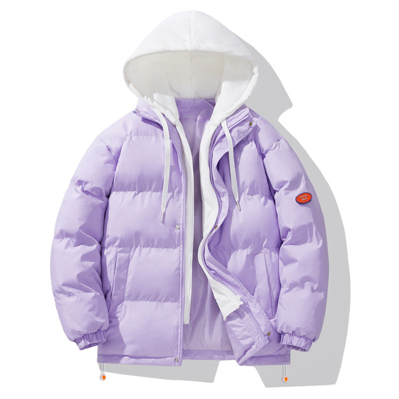 Cotton Coat Jacket Men's Fake Two-piece Hooded Teenagers