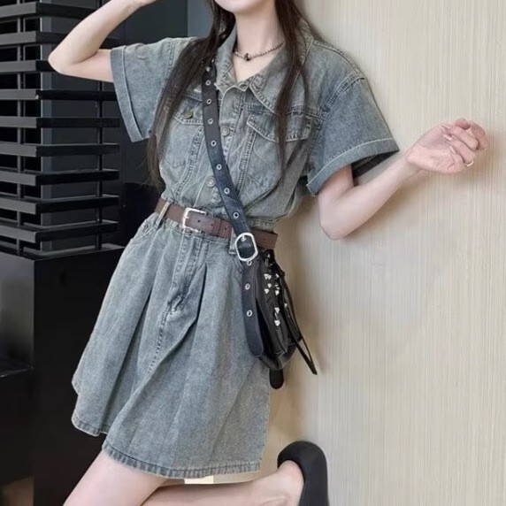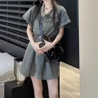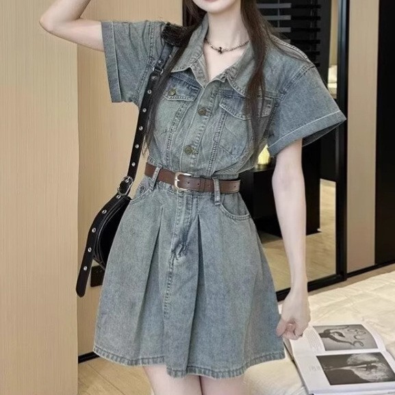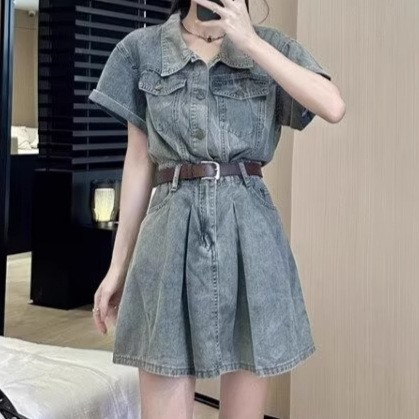 Denim Skirt Figure-flattering, Waist-cinching Design That Creates A Slimming Look