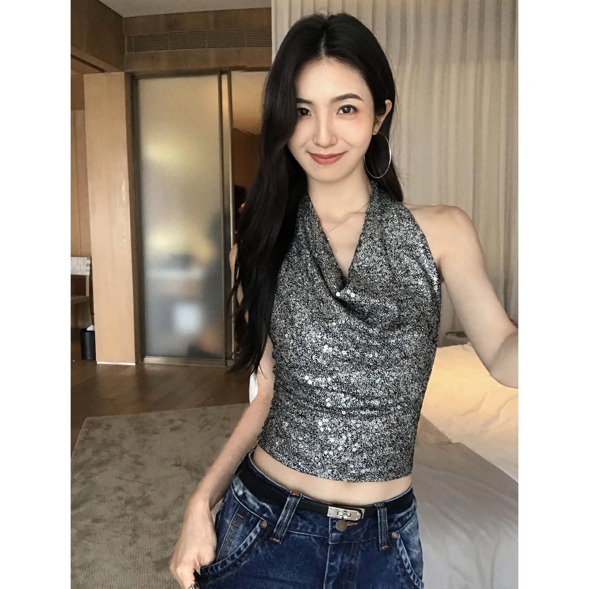 Design Sense Of Short Sleeveless Top With Open Back