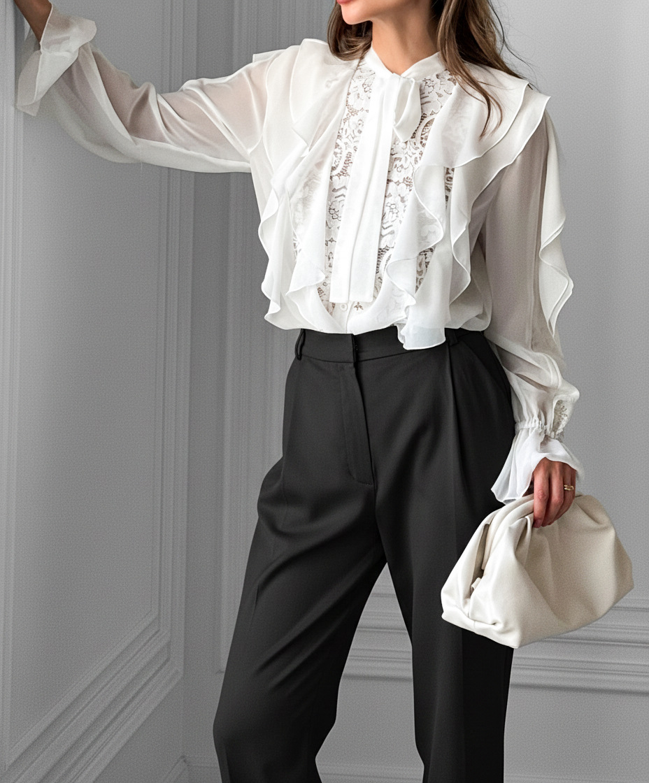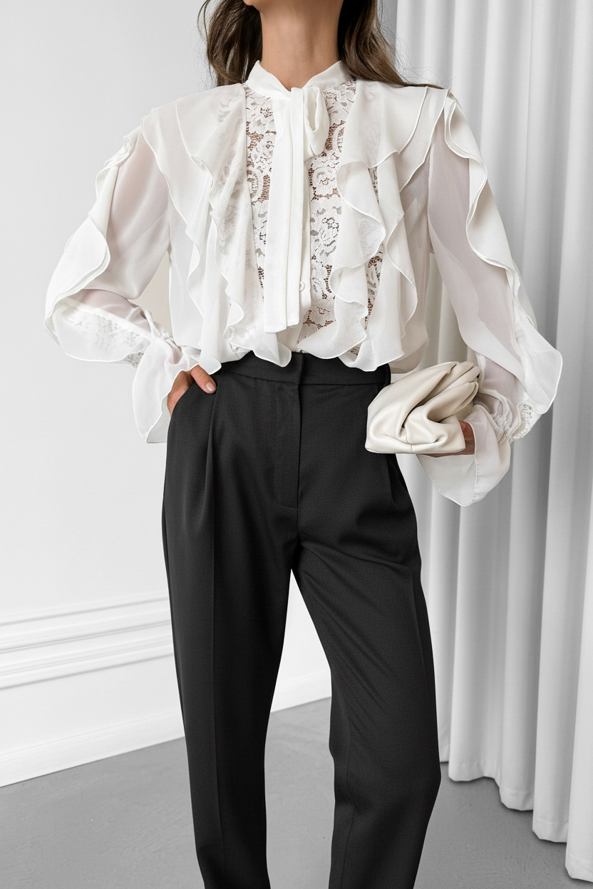 Fashionable High-end Top With Ruffled Edges