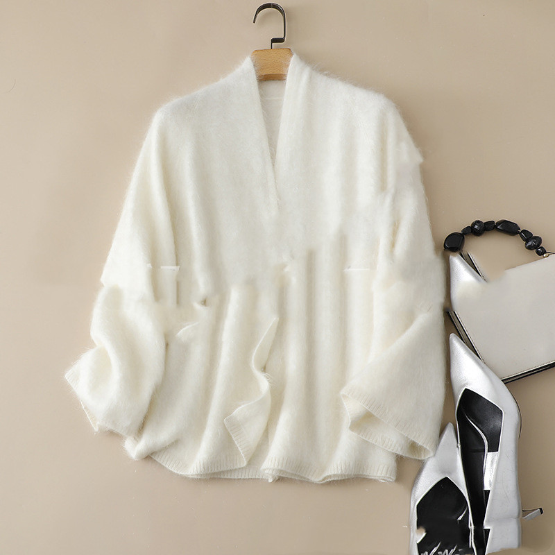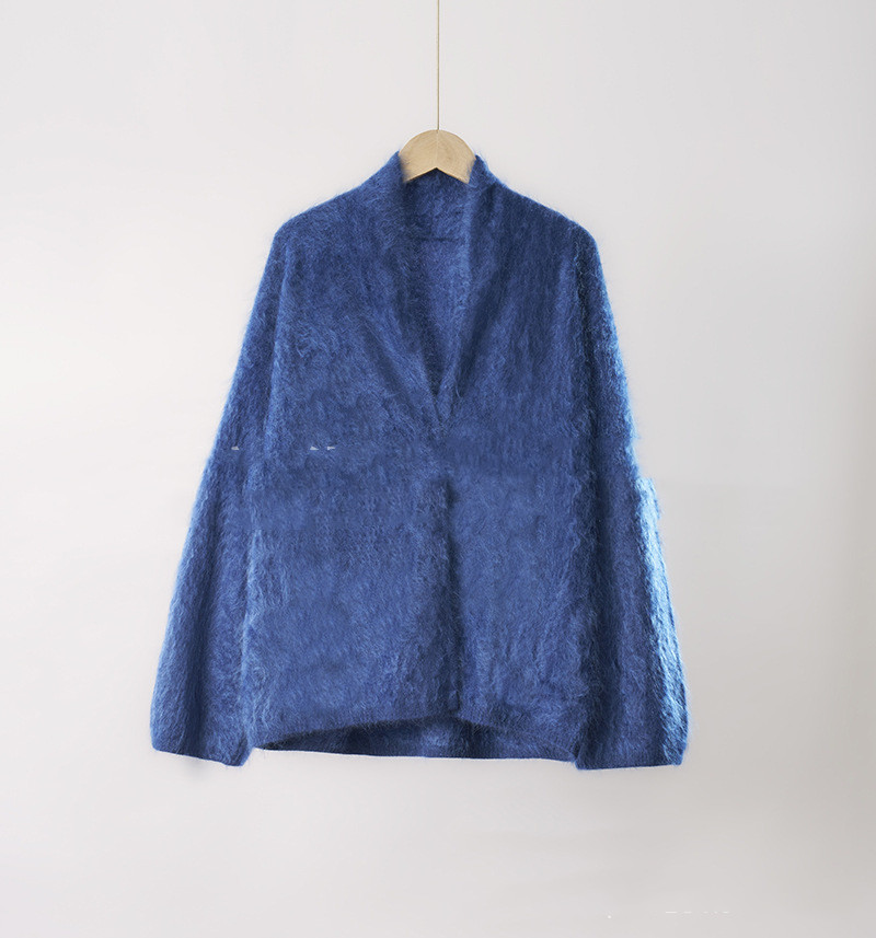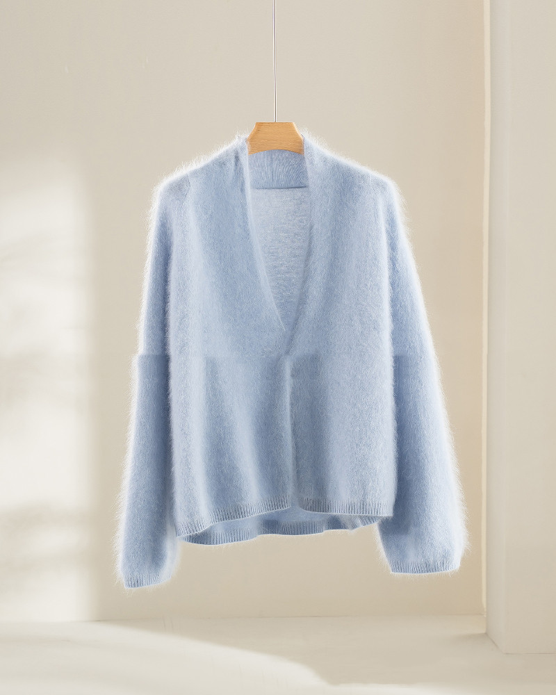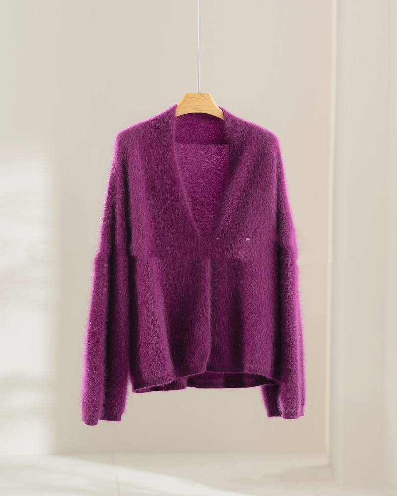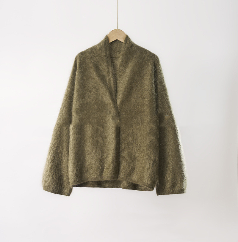 Loose-fit Brushed Cashmere Sweater With A Straight-cut Long-sleeved V-neck Cardigan Design And A Shawl-style Collar