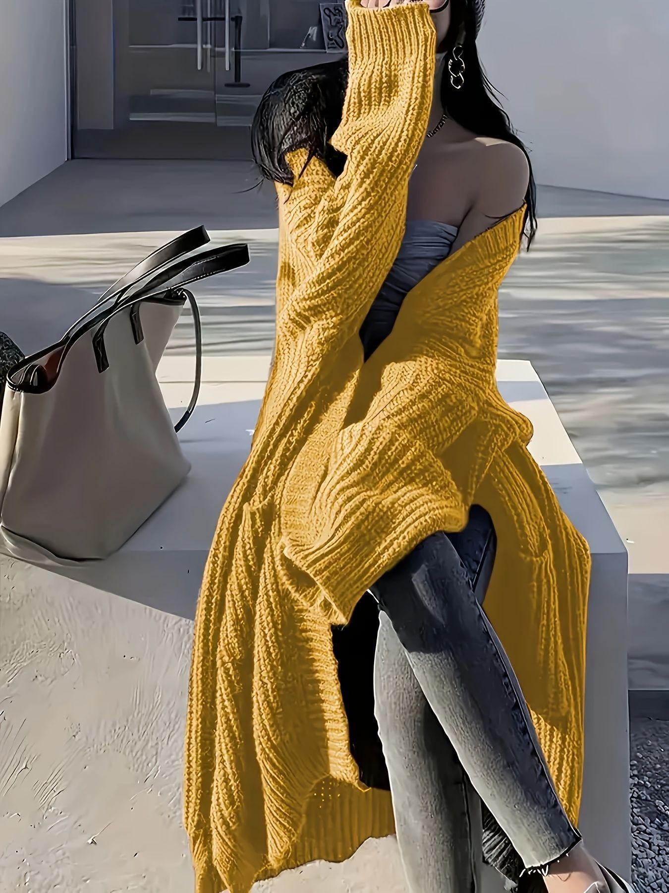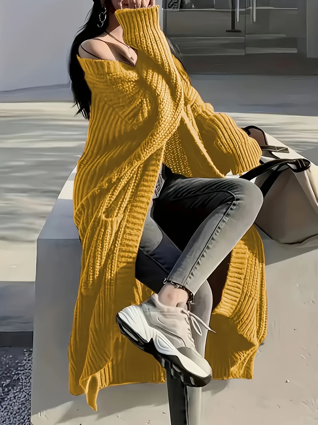 Overknee Sweater Coat Women's Loose Long-sleeved Knitted Cardigan