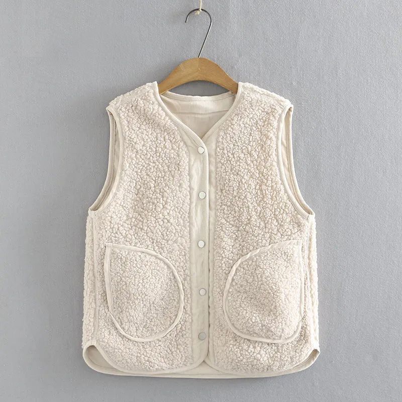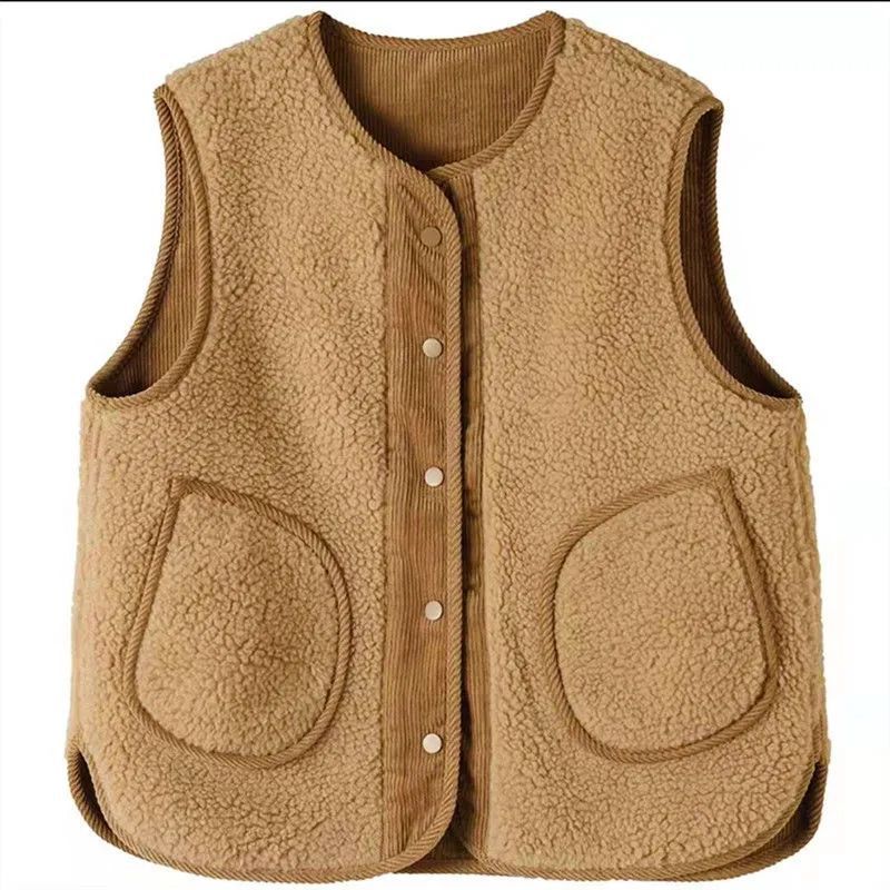 Oversized Loose Corduroy Lamb Wool Retro Warm Thick Vest