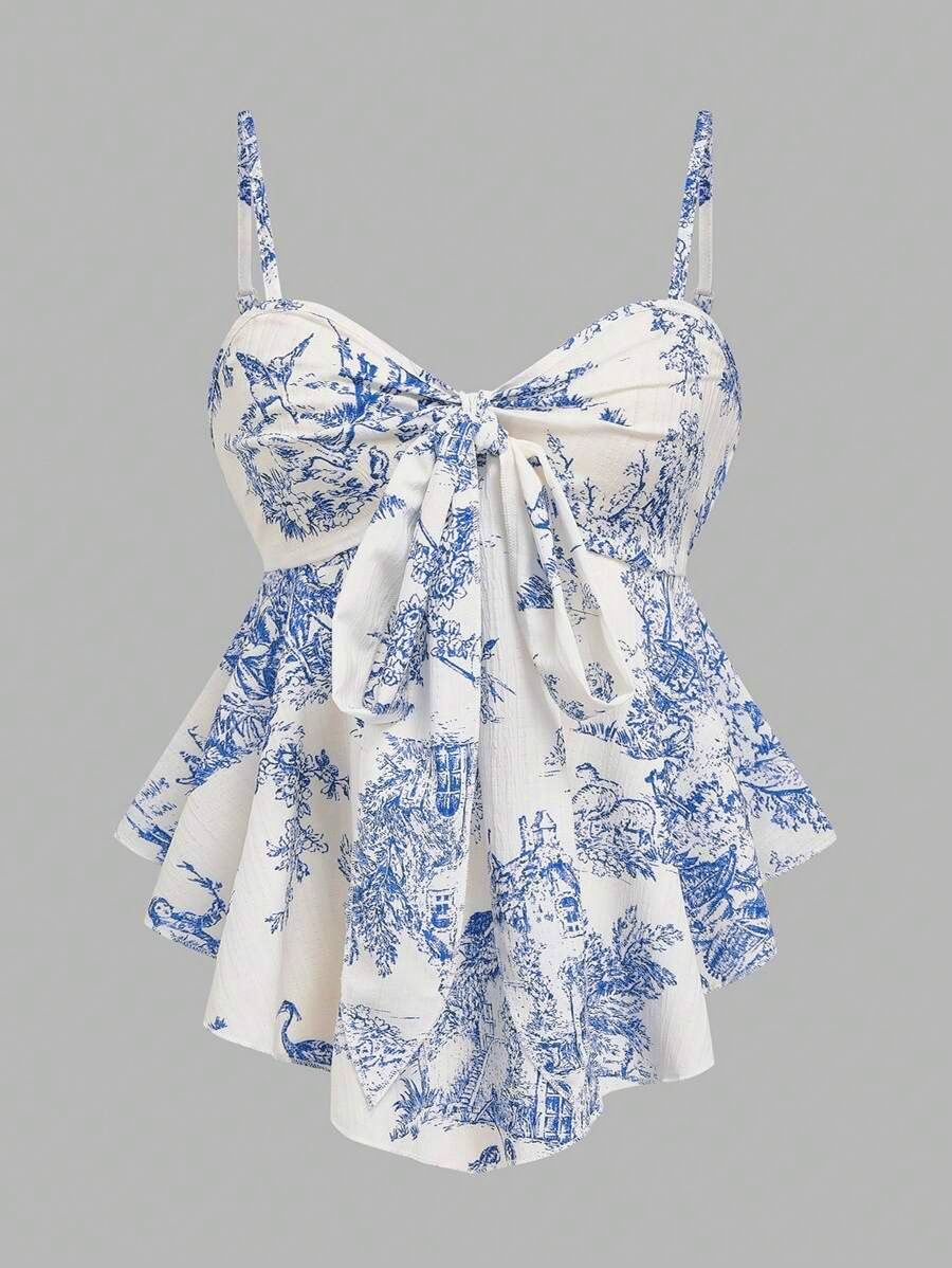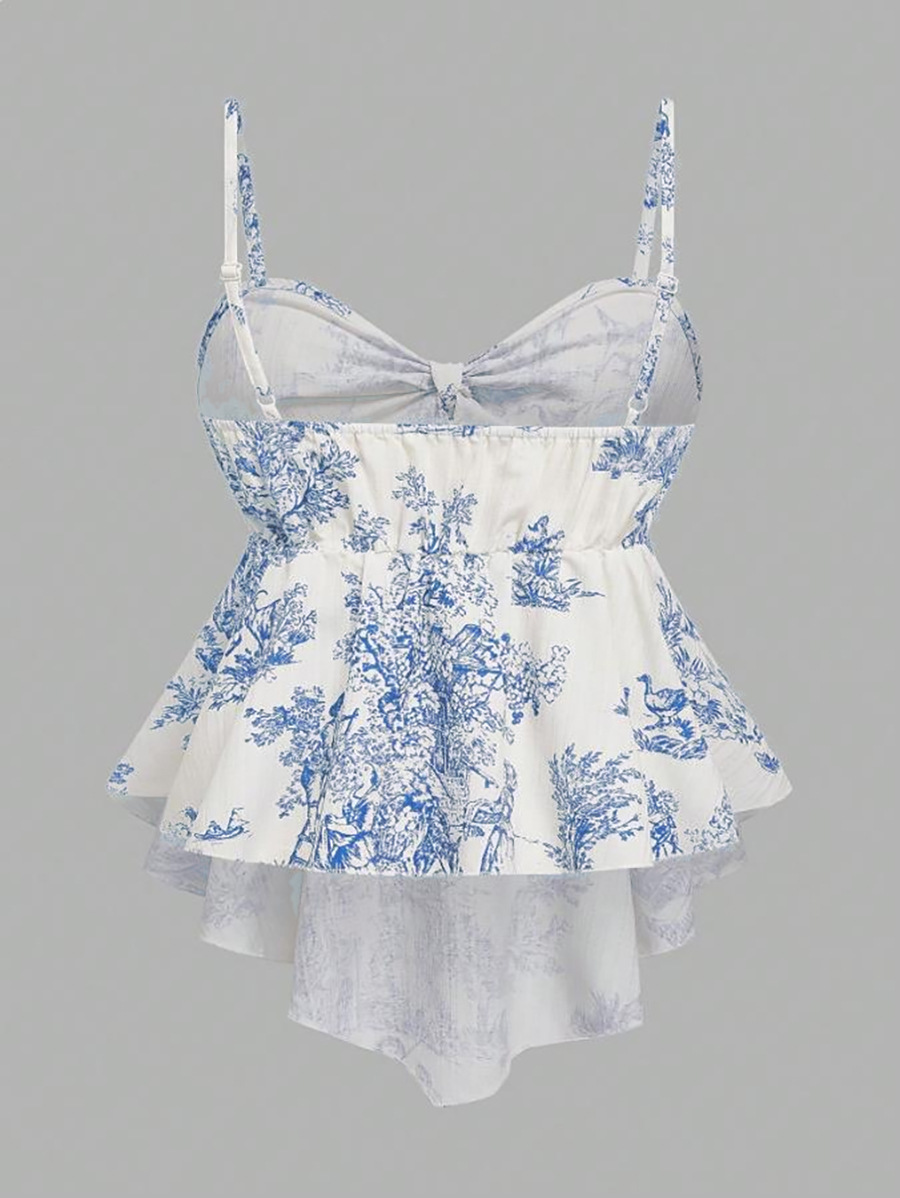 Printed Sleeveless Irregular Hem Camisole Top
