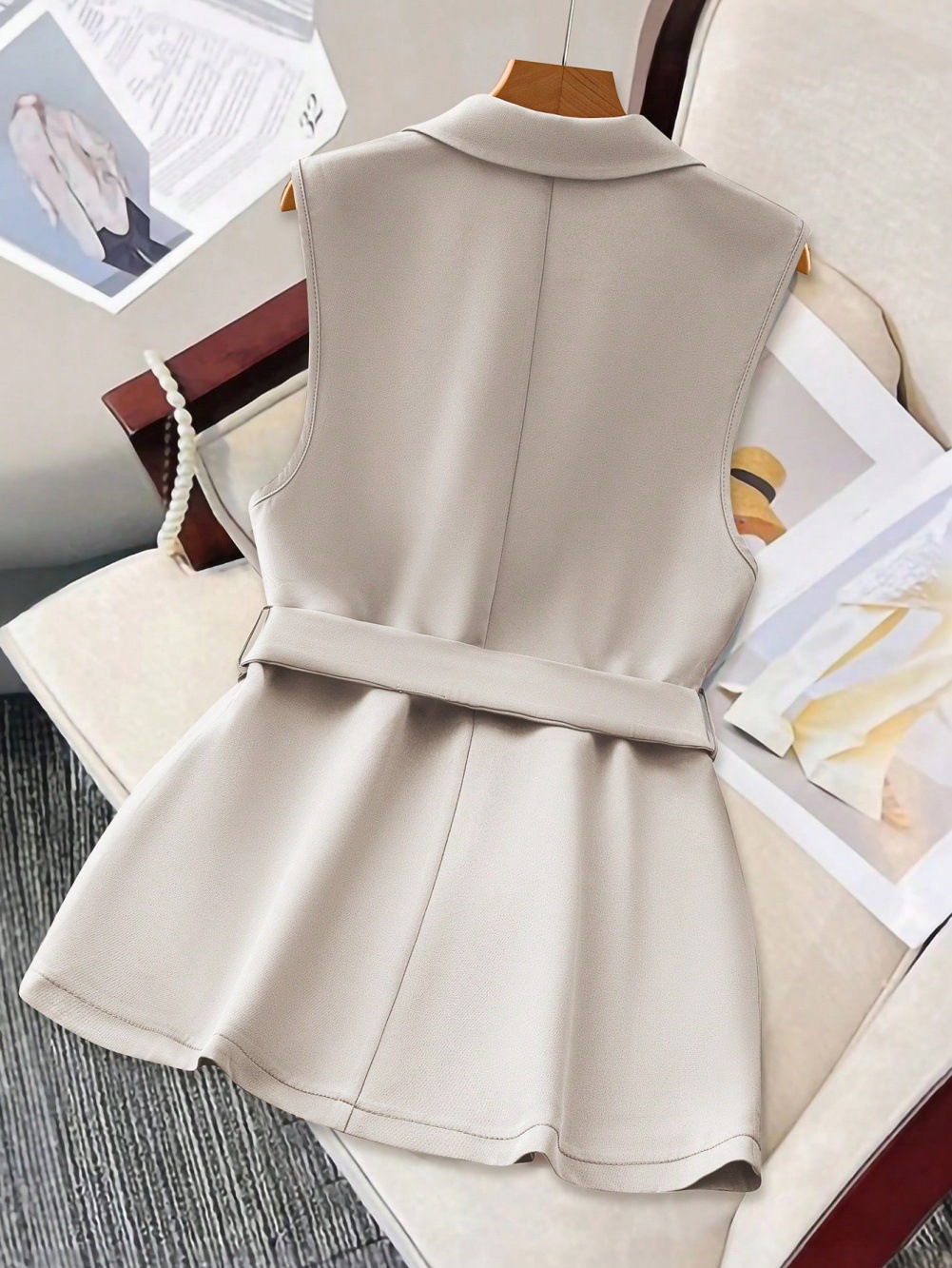 Spring New Arrival Womens Simple Solid-Color Belted Blazer Vest