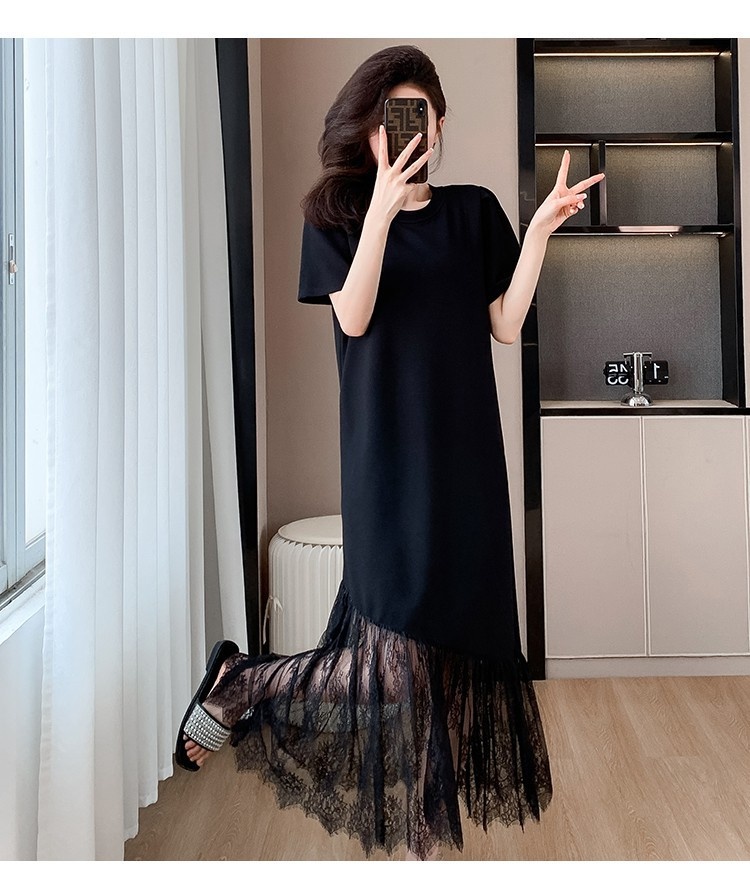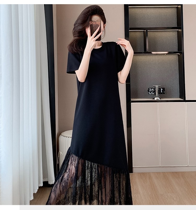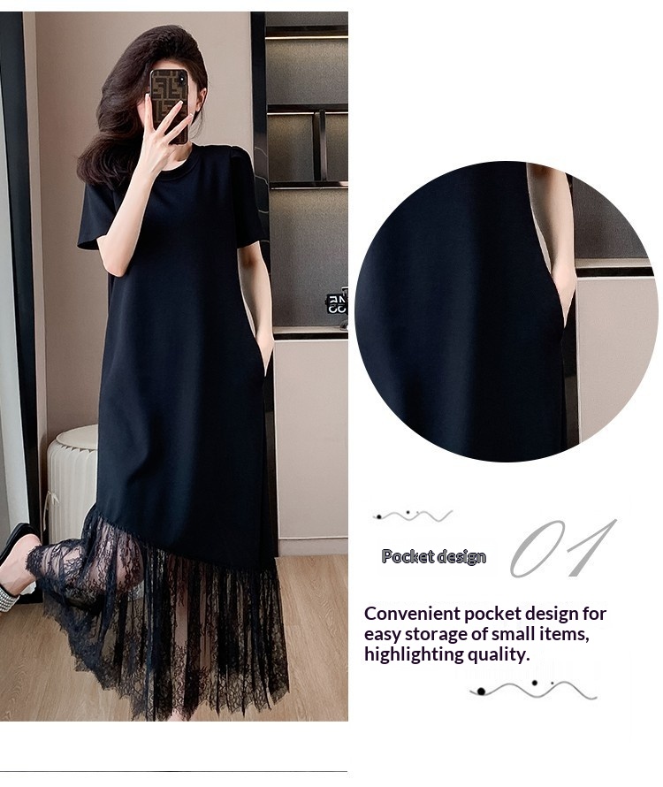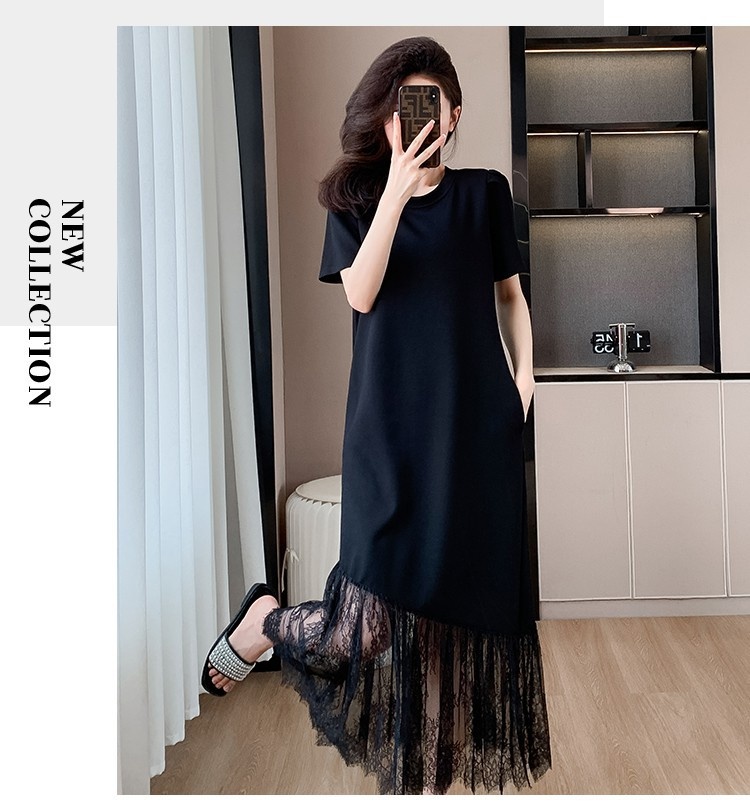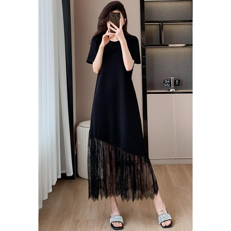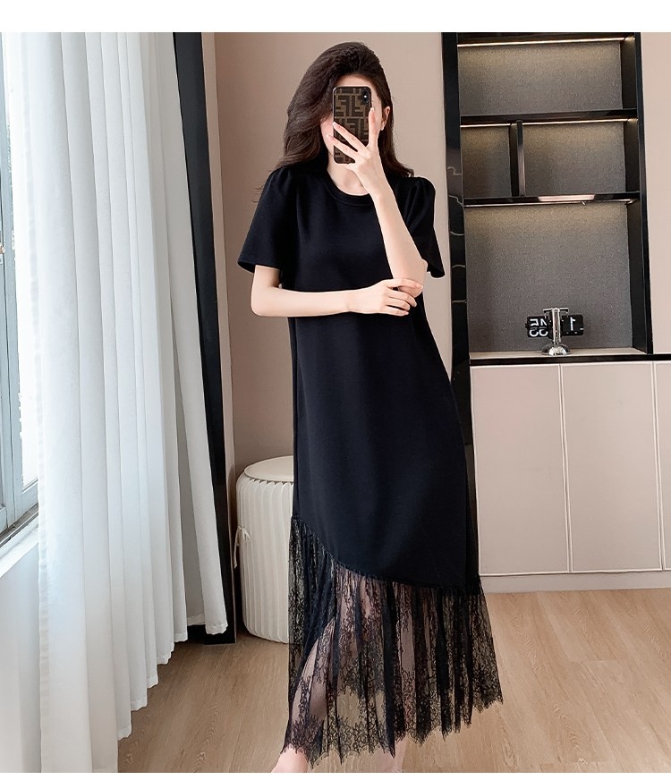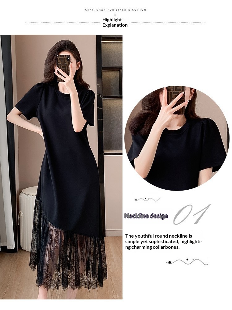 Womens Casual Slim-Fit Lace Short-Sleeve Dress