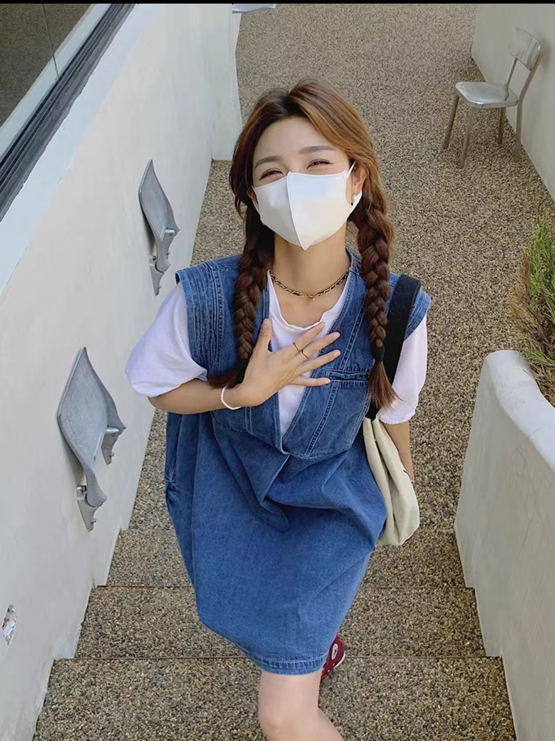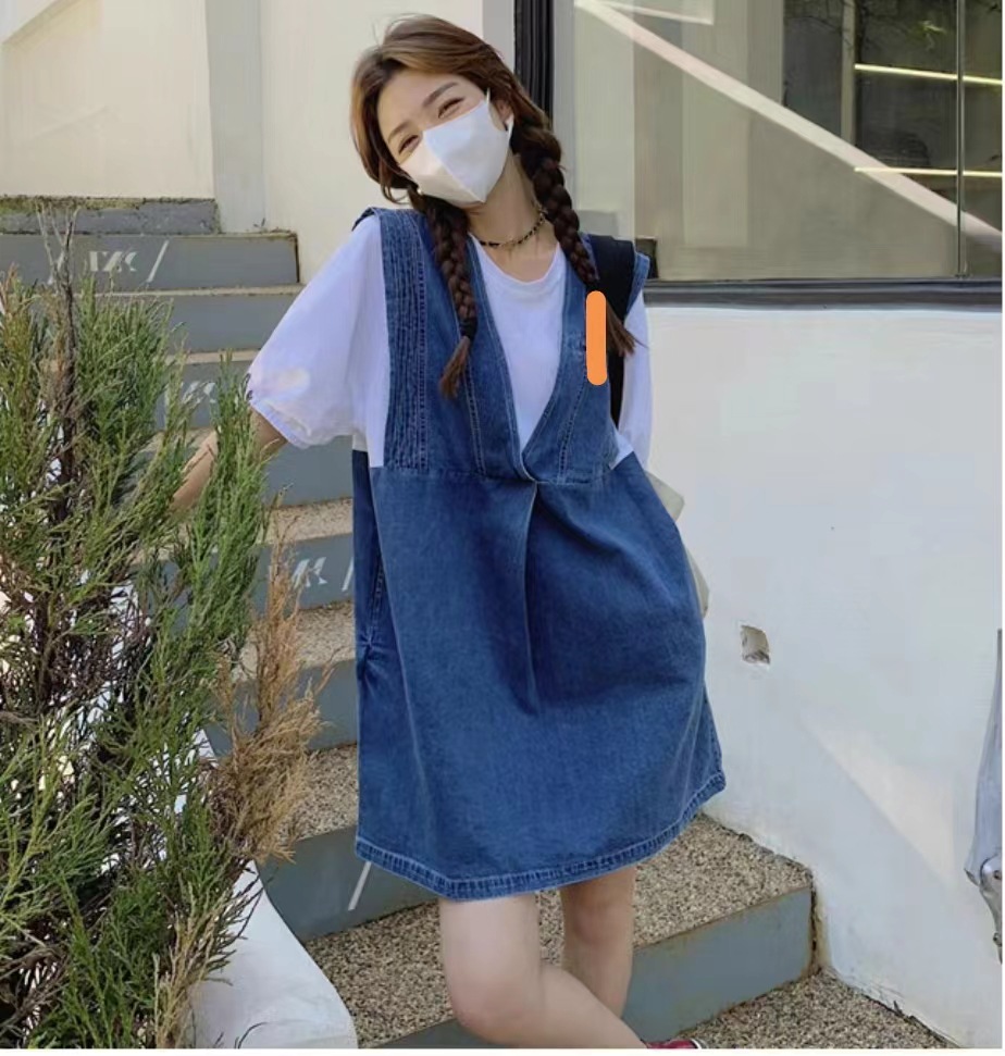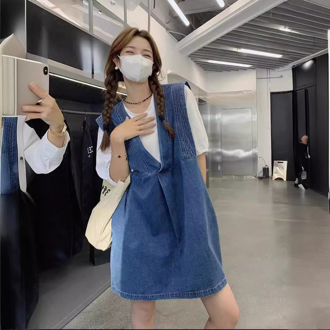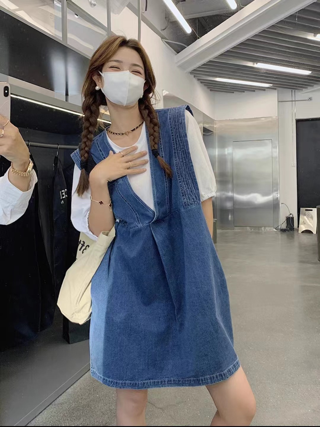 Womens Retro Sweet Two-Piece Look Denim Dress