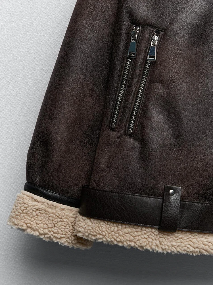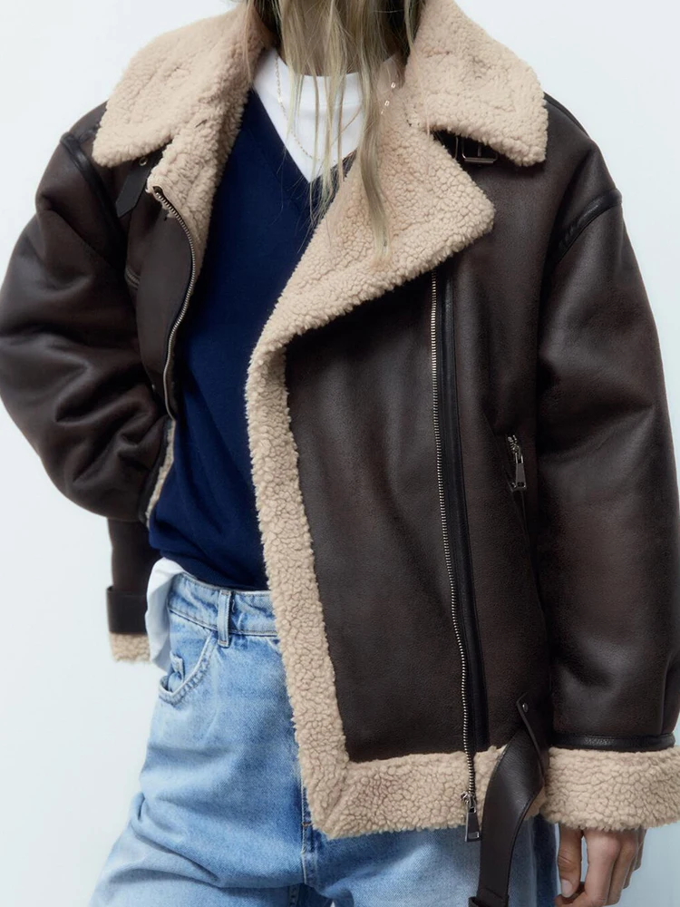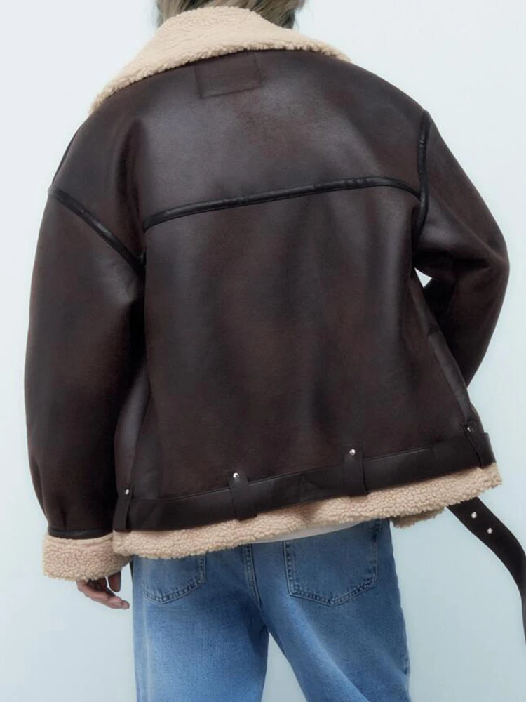 Autumn Winter Women Faux Lamb Fur Thick Warm Jacket with Belt Streetwear Female Zipper Loose Moto Biker Coat Outwear