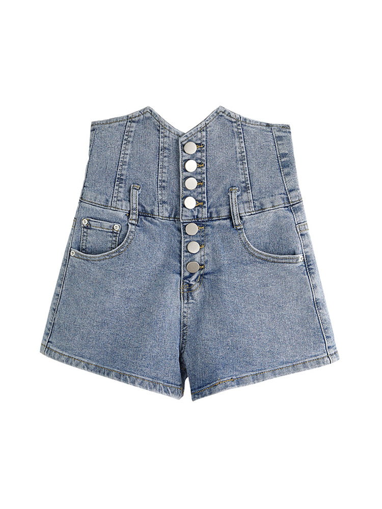 Breasted Denim Shorts For Women''s Summer New Slim Ultra-High Waist Tuck