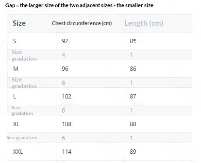 Sizes: S, M, L, XL, XXL