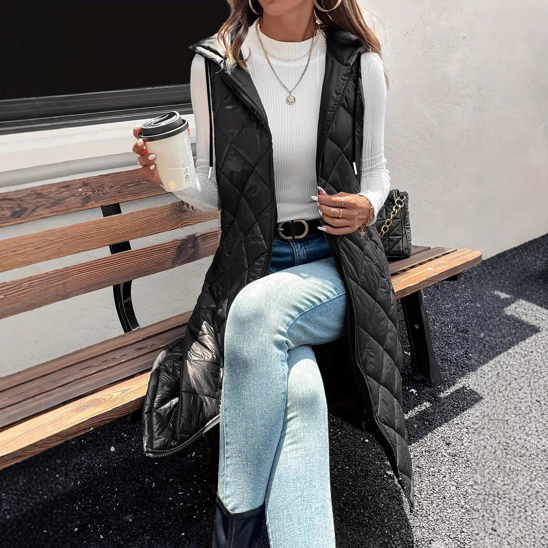 Mid-length Vest Dalin Plaid Hooded Sleeveless Coat