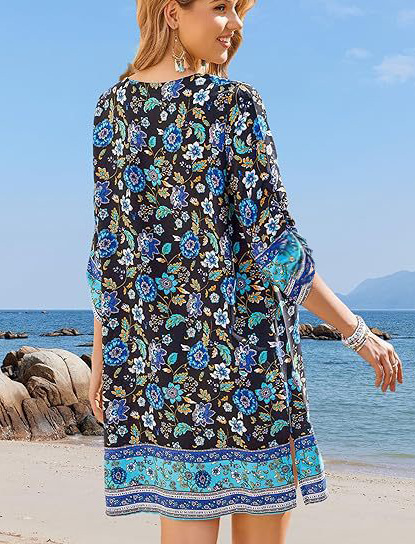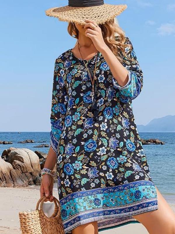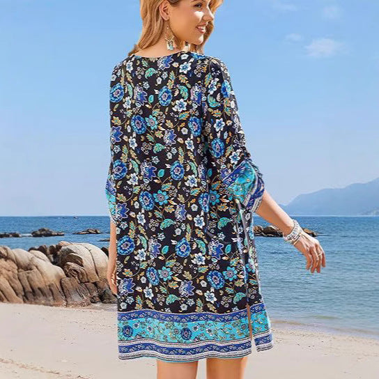 Summer Tassel Crew Neck Three-Quarter Sleeve Printed Dress