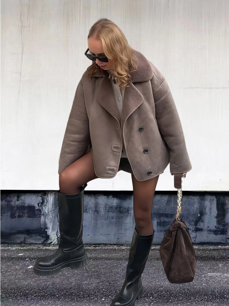 Vintage Lambswool Lapel Long-sleeve Jacket For Women